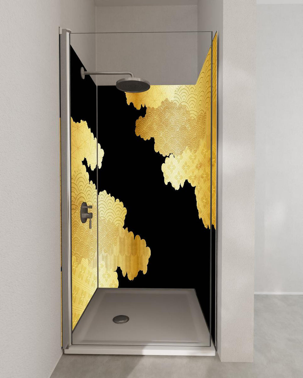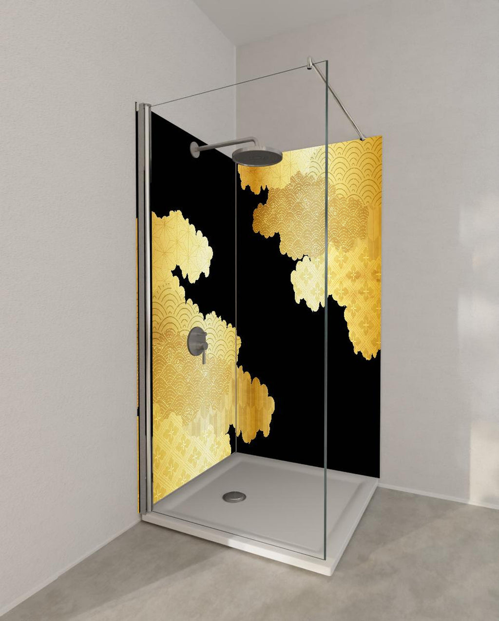 Duschrückwand - Abstrakt Goldene Wellen Texturen Muster