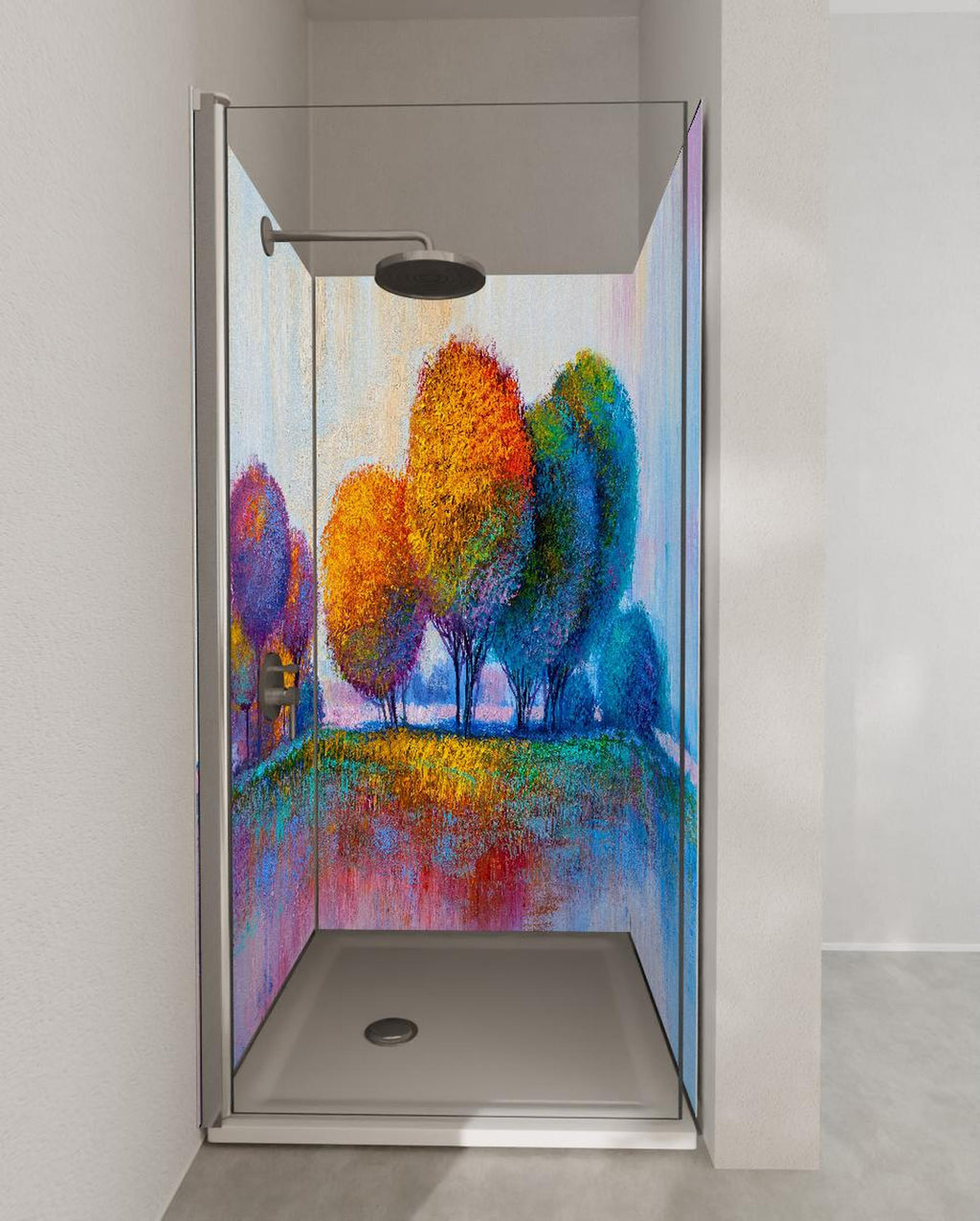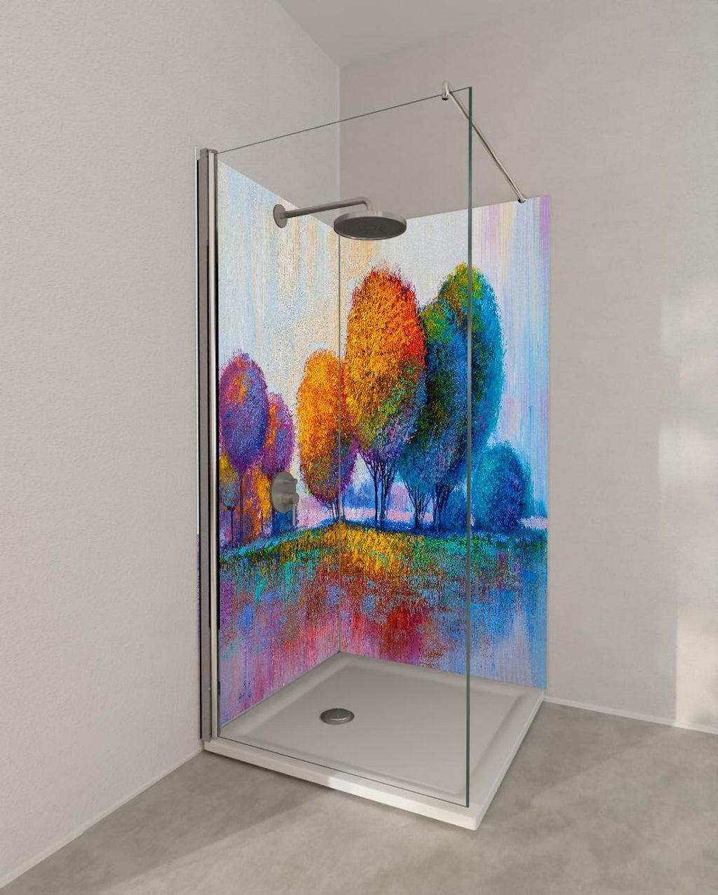 Duschrückwand - Abstrakte bunte Malerei eines Waldes