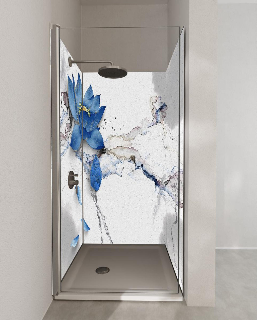 Duschrückwand - Abstrakte Illustration blauer Blume