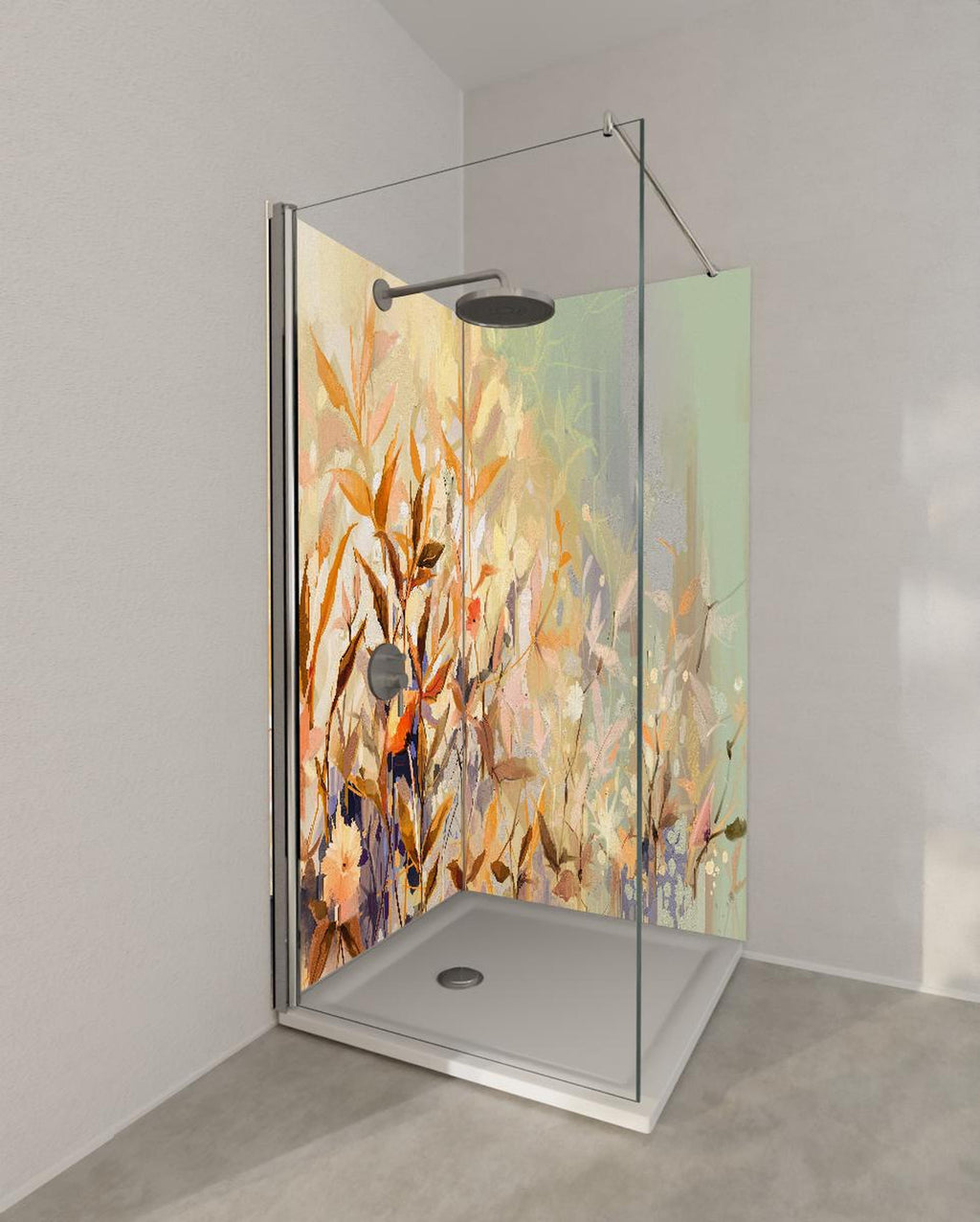 Duschrückwand - Abstraktes Ölgemälde von bunten Blumen