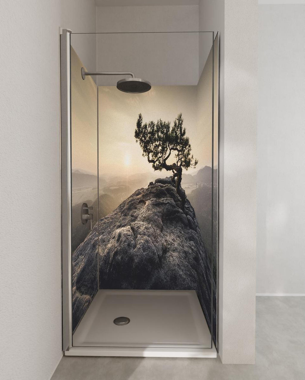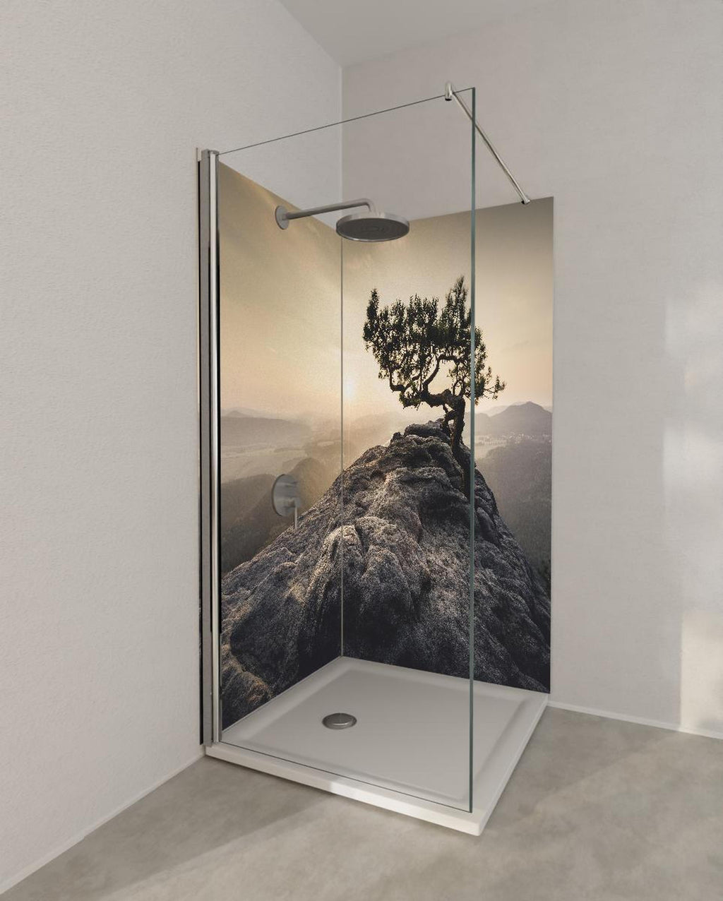 Duschrückwand - alte Kiefer zum Sonnenaufgang - Sächsische Schweiz