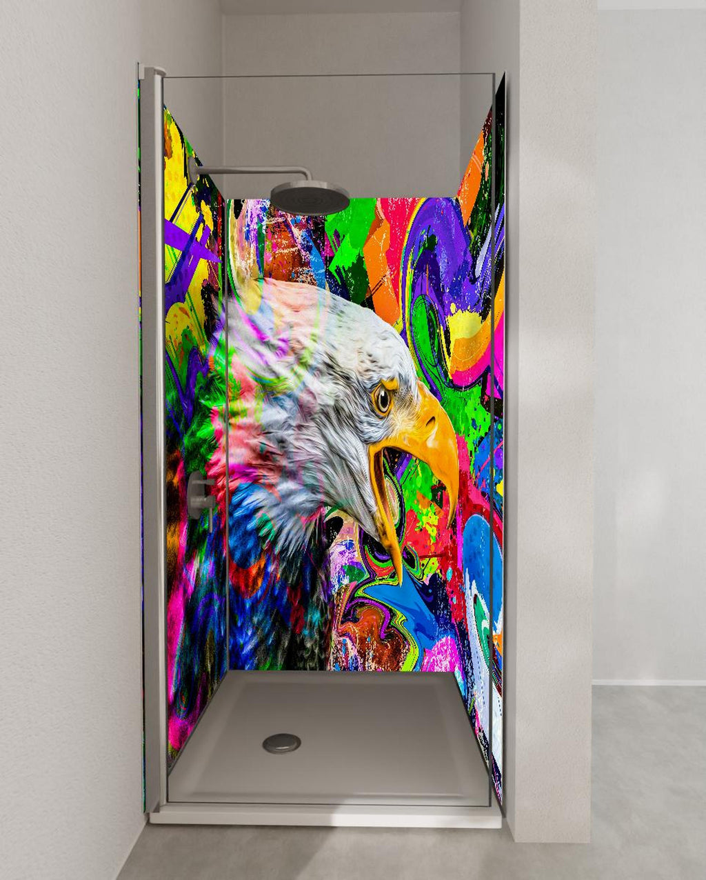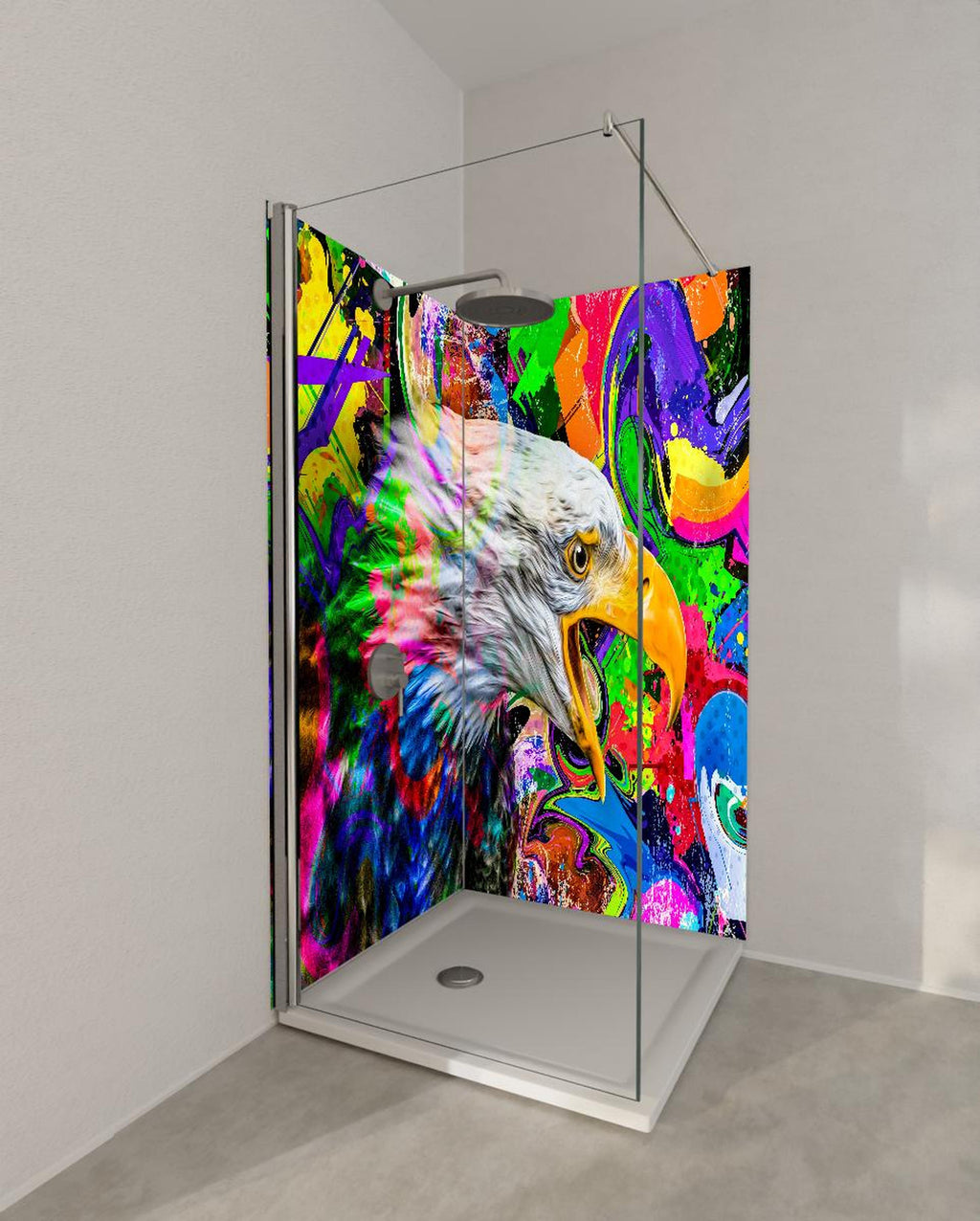 Duschrückwand - Bunter abstrakter Adlerkopf