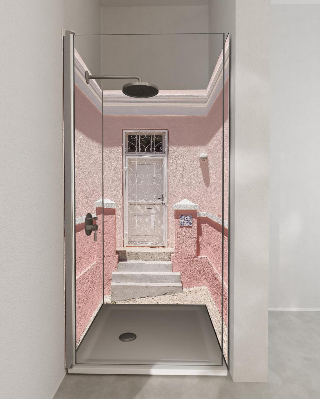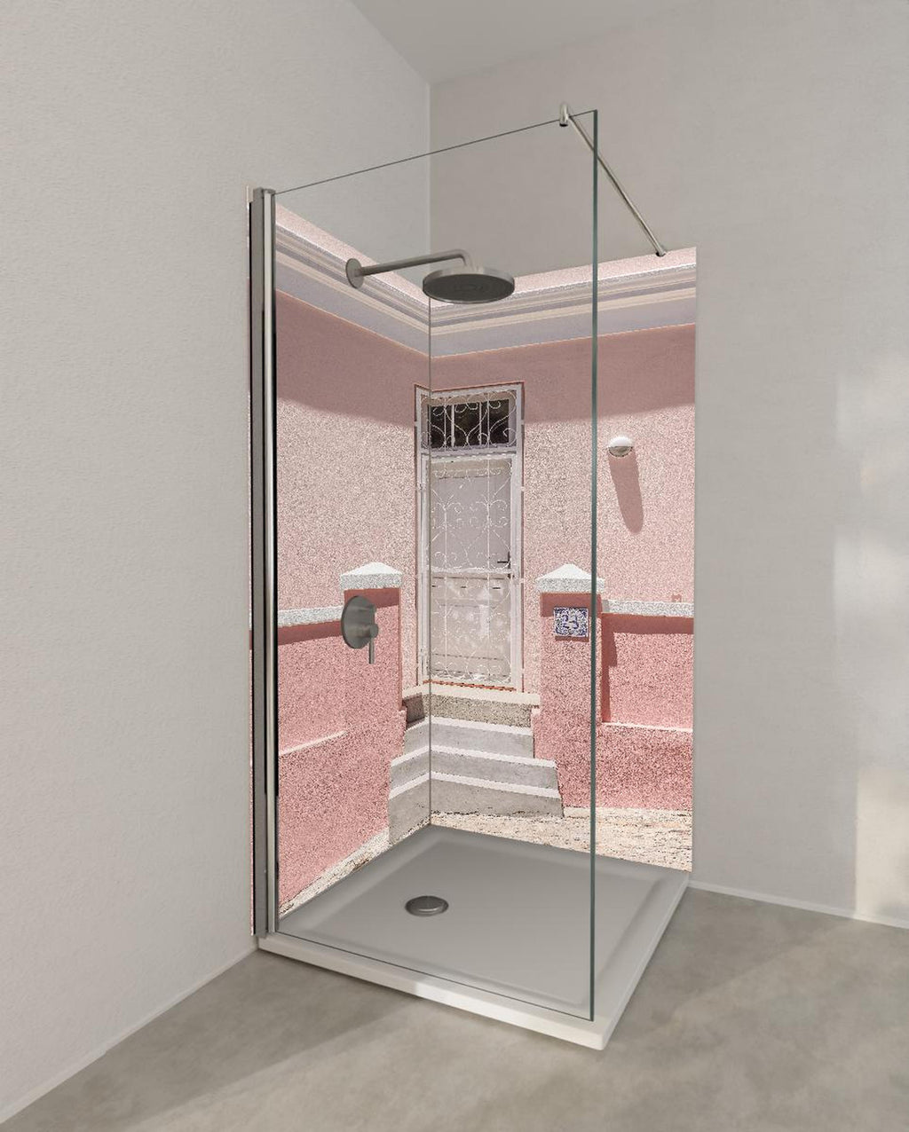 Duschrückwand - Charmante pastellrosa Hausfassade