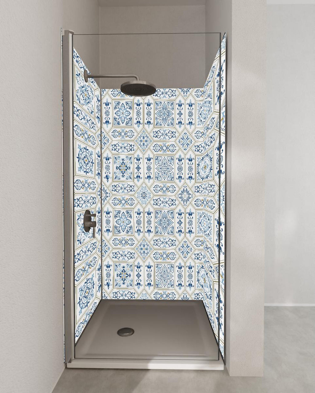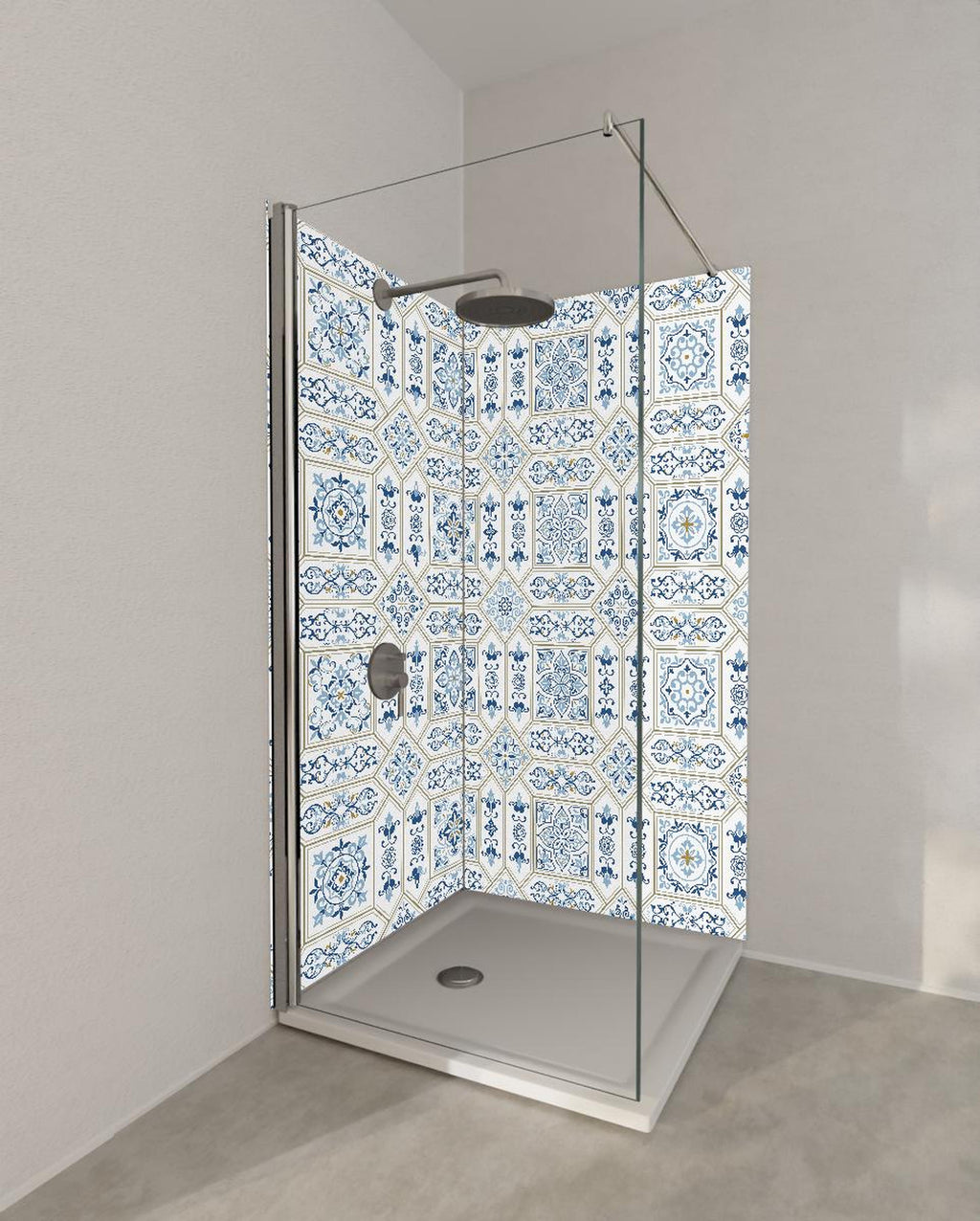 Duschrückwand - Dekoratives Blau-Weißes Vintage Fliesenmuster