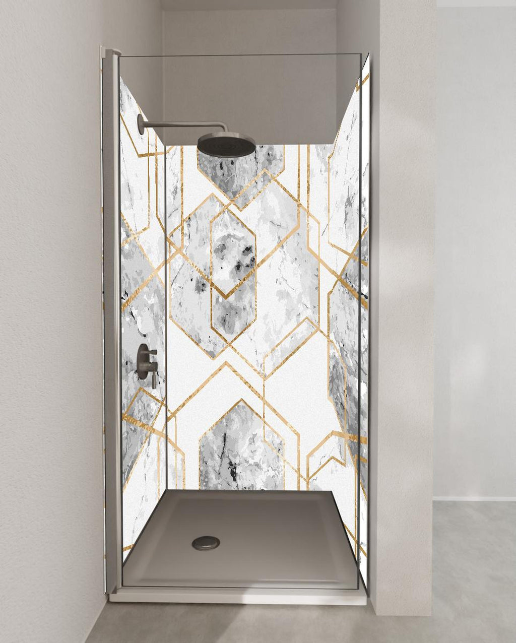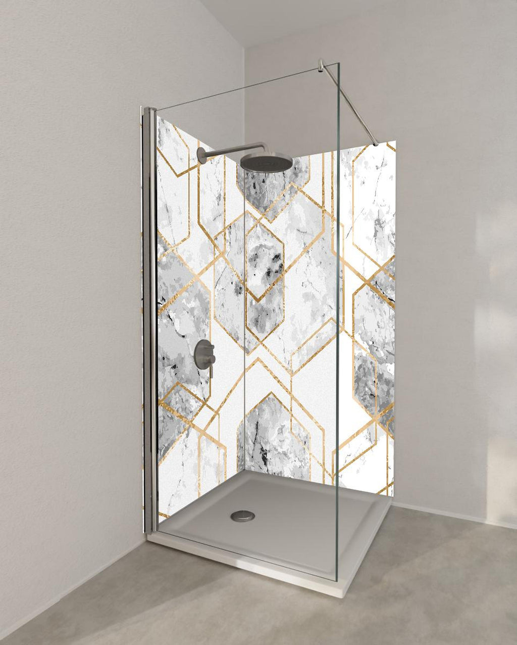 Duschrückwand - Edle Marmoroptik in Weiß und Gold