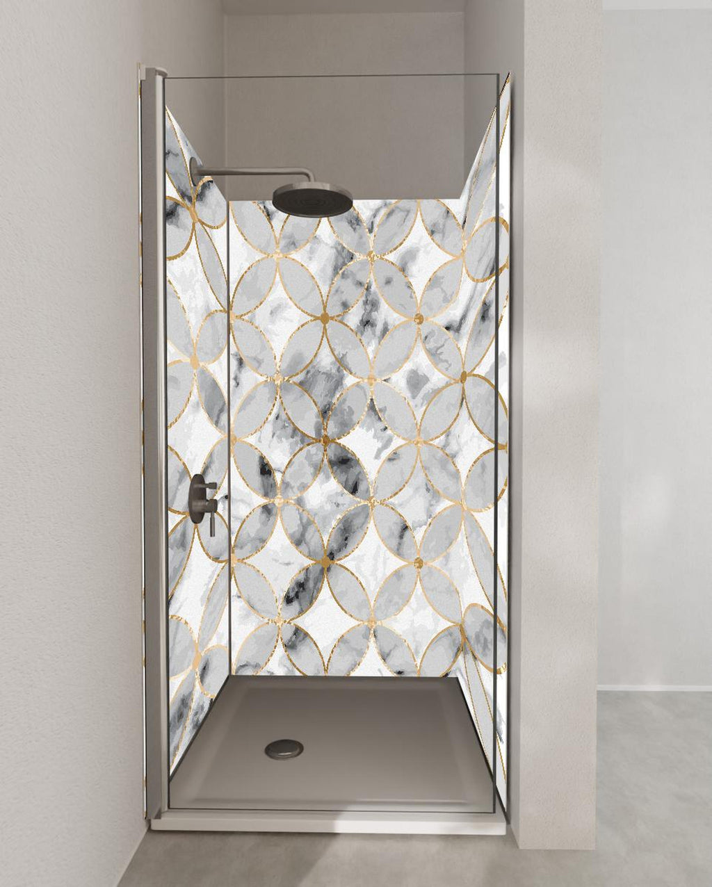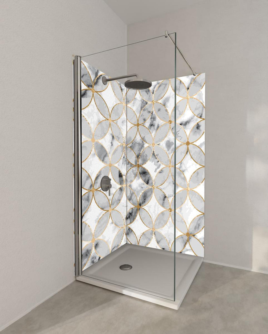 Duschrückwand - Edles Marmor-Muster in Weiß-Gold und Grautönen