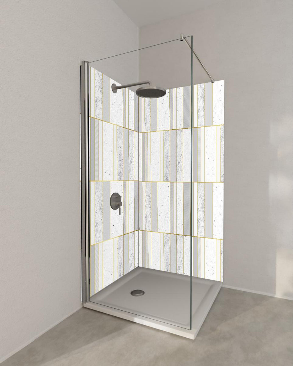 Duschrückwand - Elegante grauweiße Textur mit Goldlinien