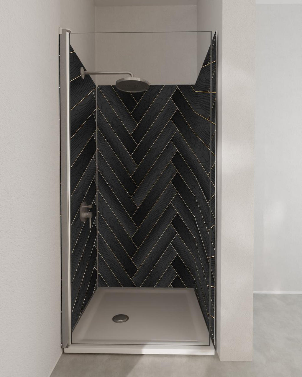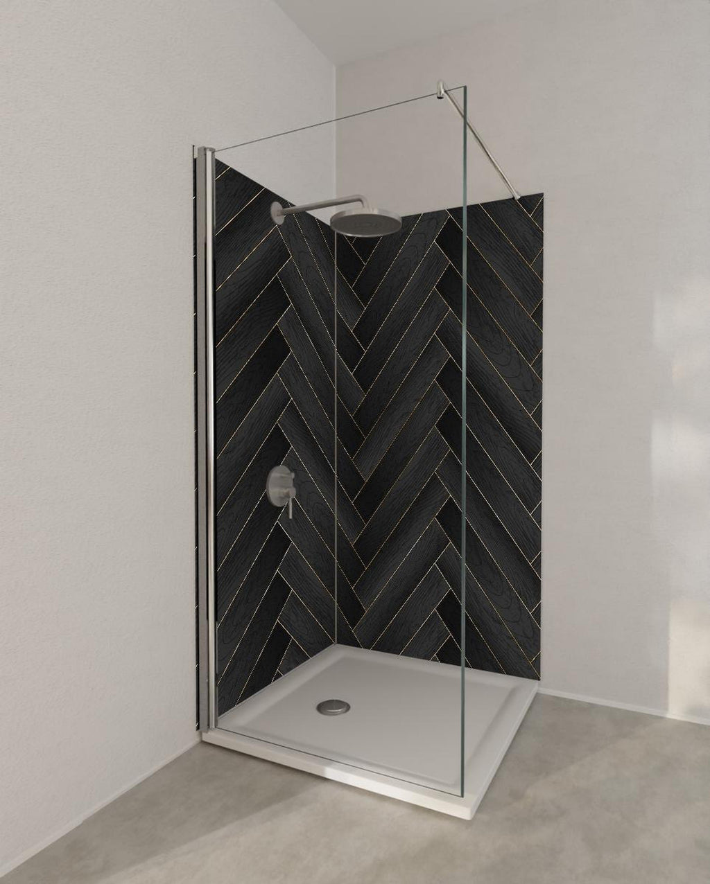 Duschrückwand - Elegantes dunkles Holzparkett in Fischgrät