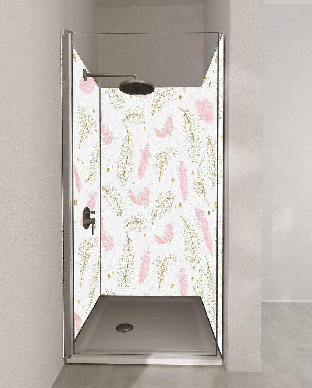 Duschrückwand - Elegantes Feder-Muster in Rosa und Goldtönen