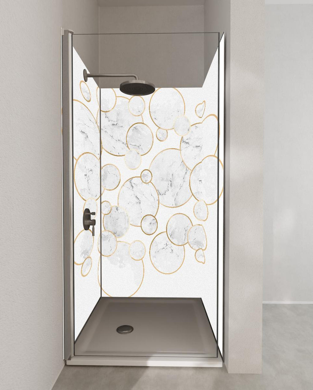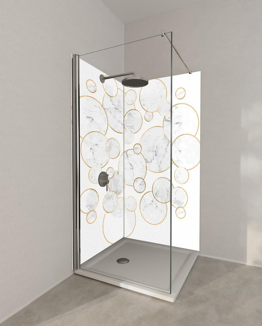 Duschrückwand - Elegantes Marmorkreis-Muster in Weiß-Gold