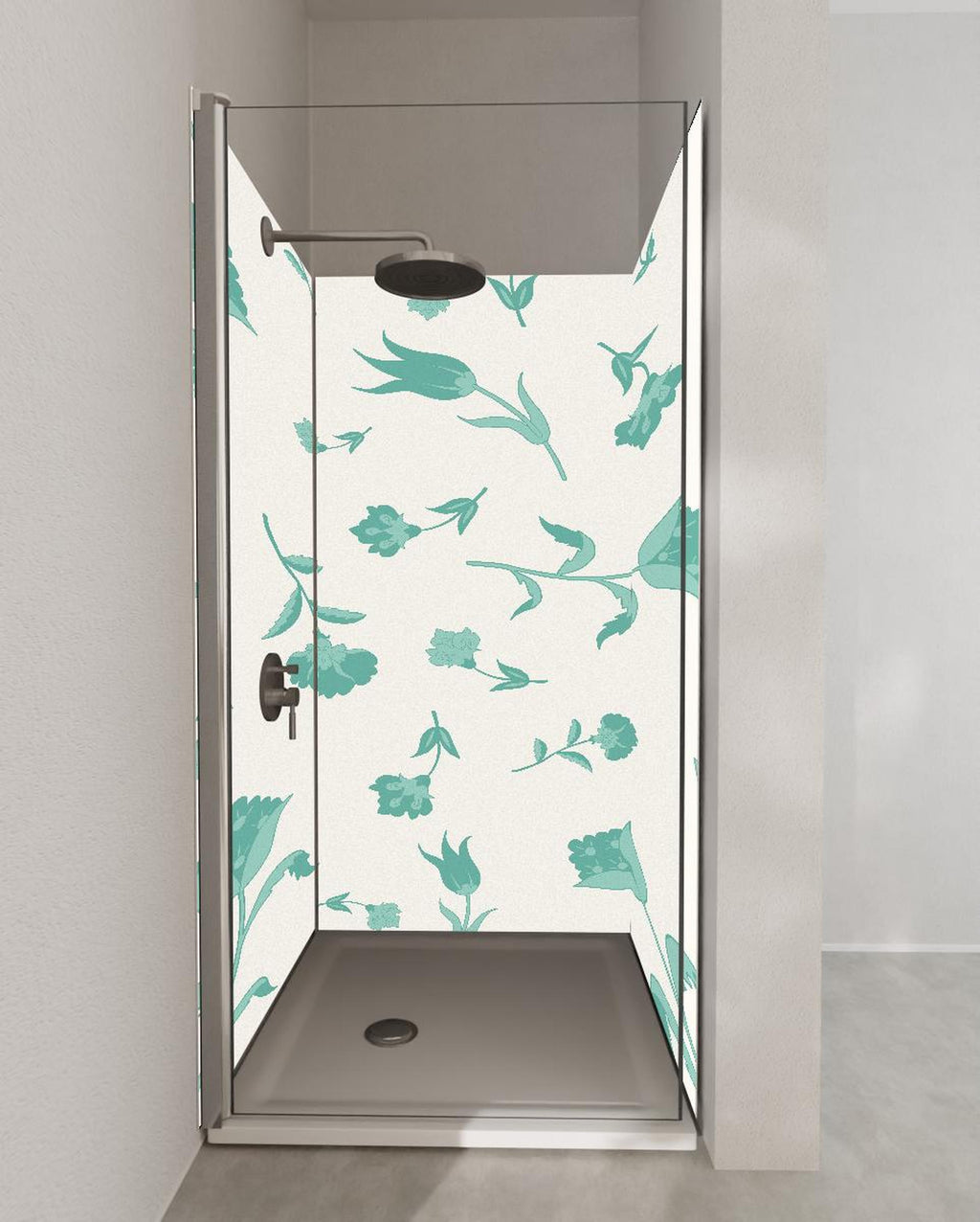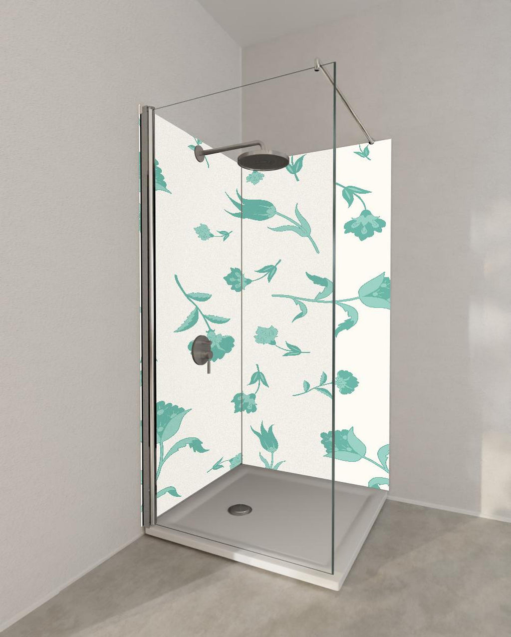 Duschrückwand - Elegantes Türkis-Weißes Blumenmuster
