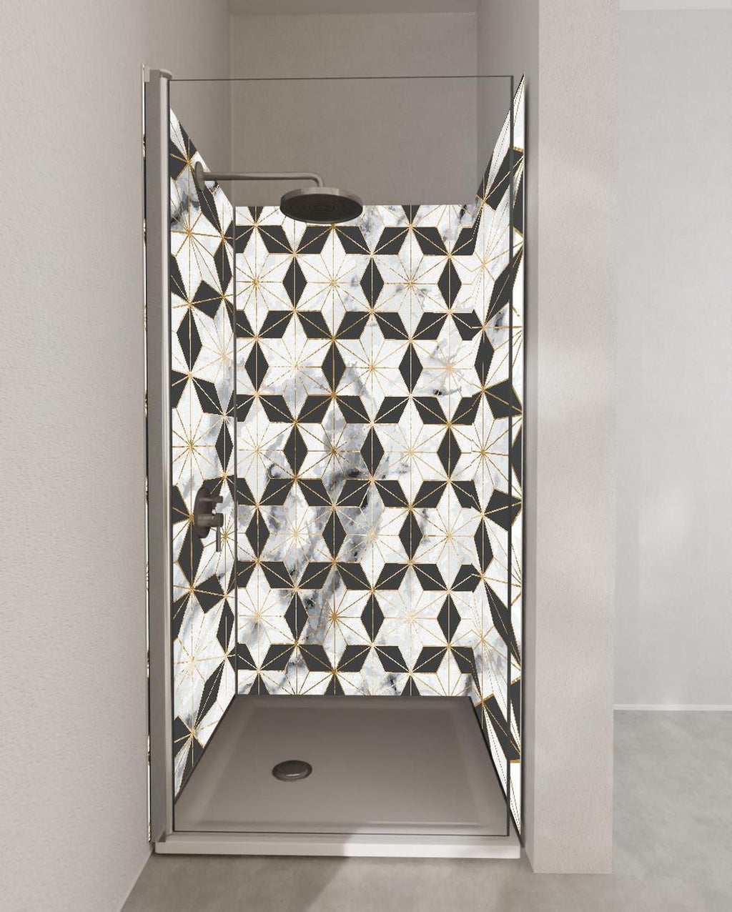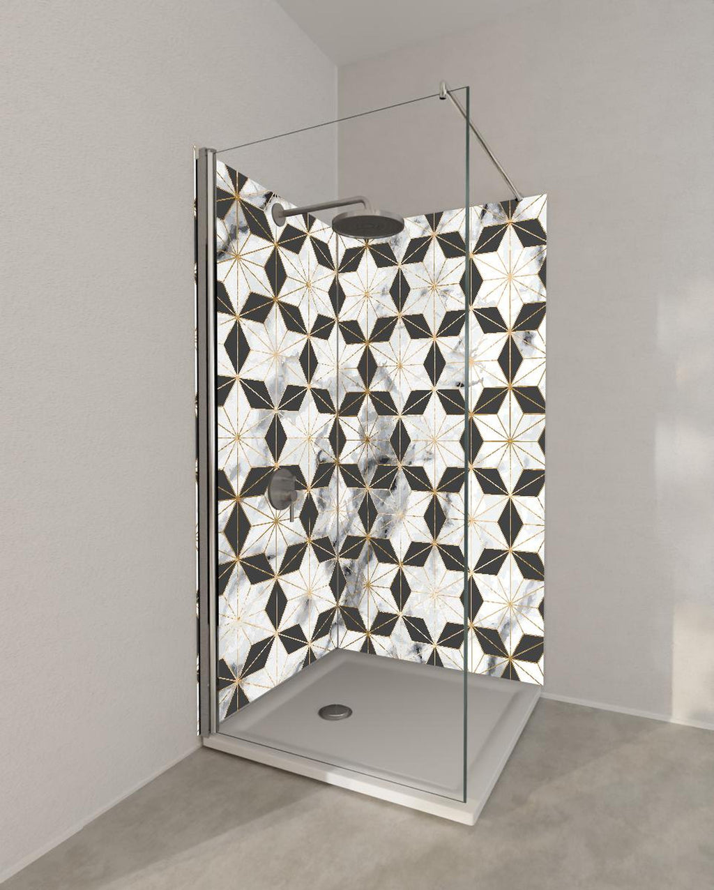Duschrückwand - Elegantes Weiß-Gold Muster auf Marmor
