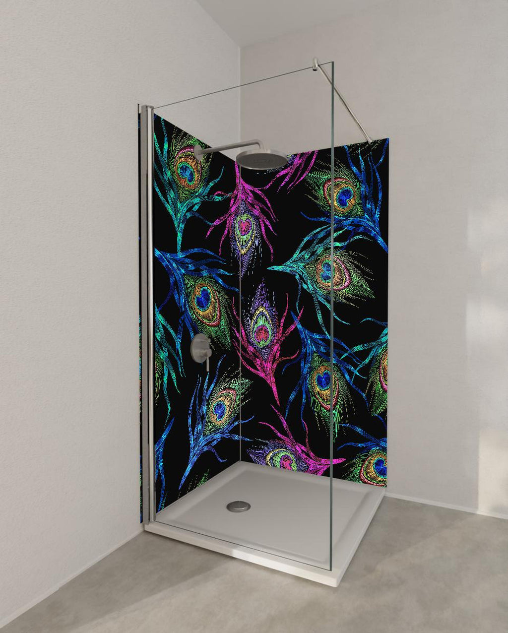 Duschrückwand - Farbenfrohe Pfauenfedern Nahtloses Muster