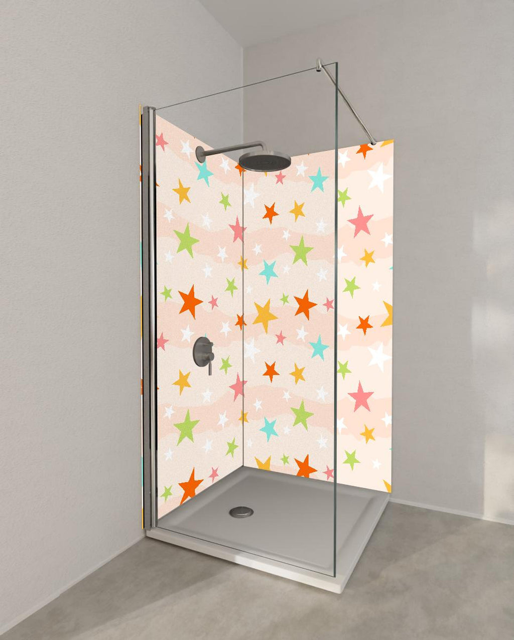 Duschrückwand - Farbenfrohe Sterne Kinderzimmer Tapetenmuster