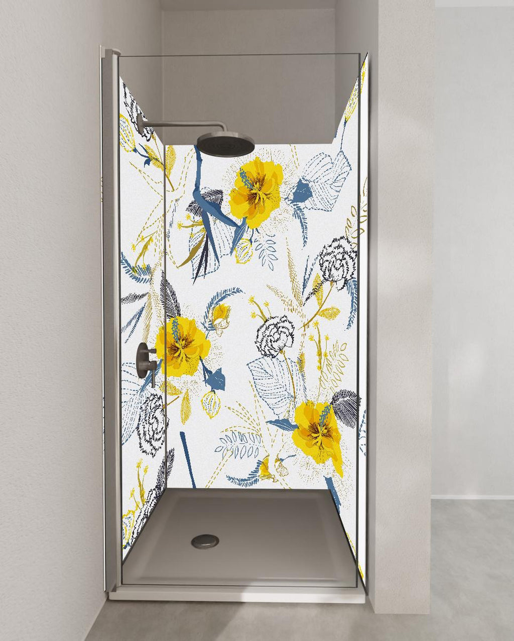 Duschrückwand - Florales Muster Gelb Weiß Illustration