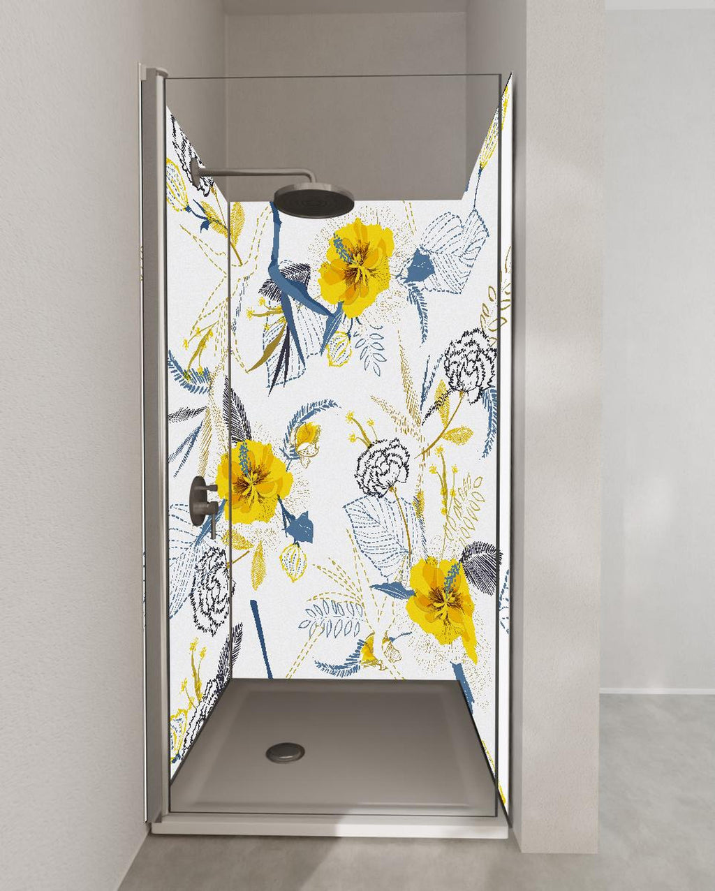 Duschrückwand - Florales Muster mit gelben Akzenten