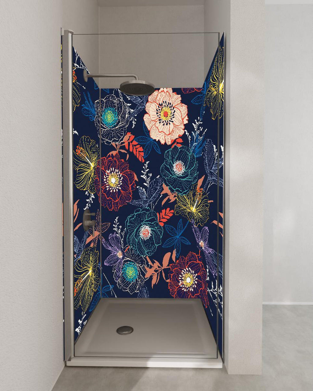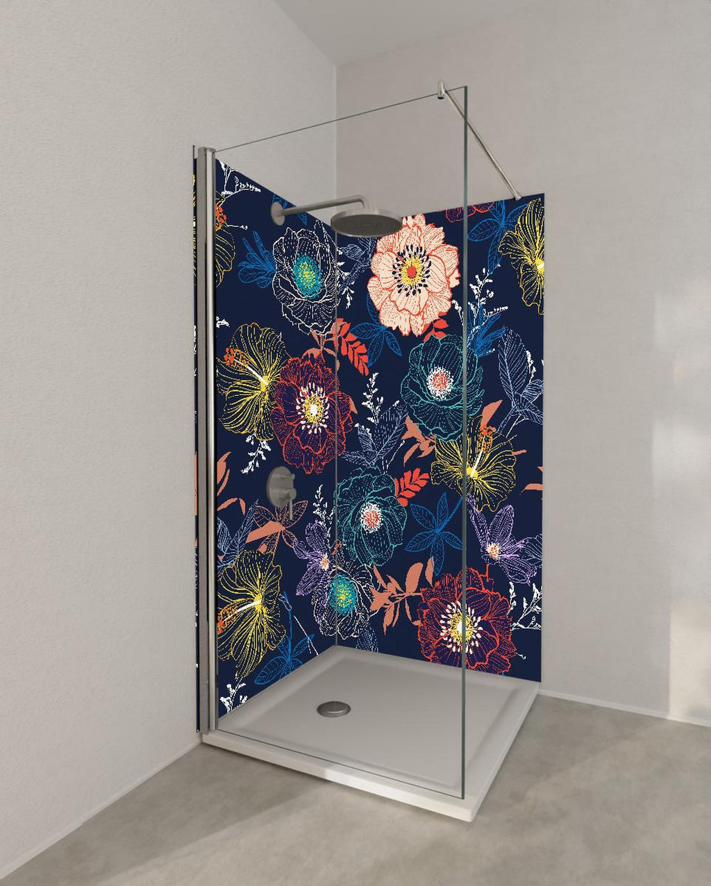 Duschrückwand - Florales Nachtgarten Muster mit Farbakzenten
