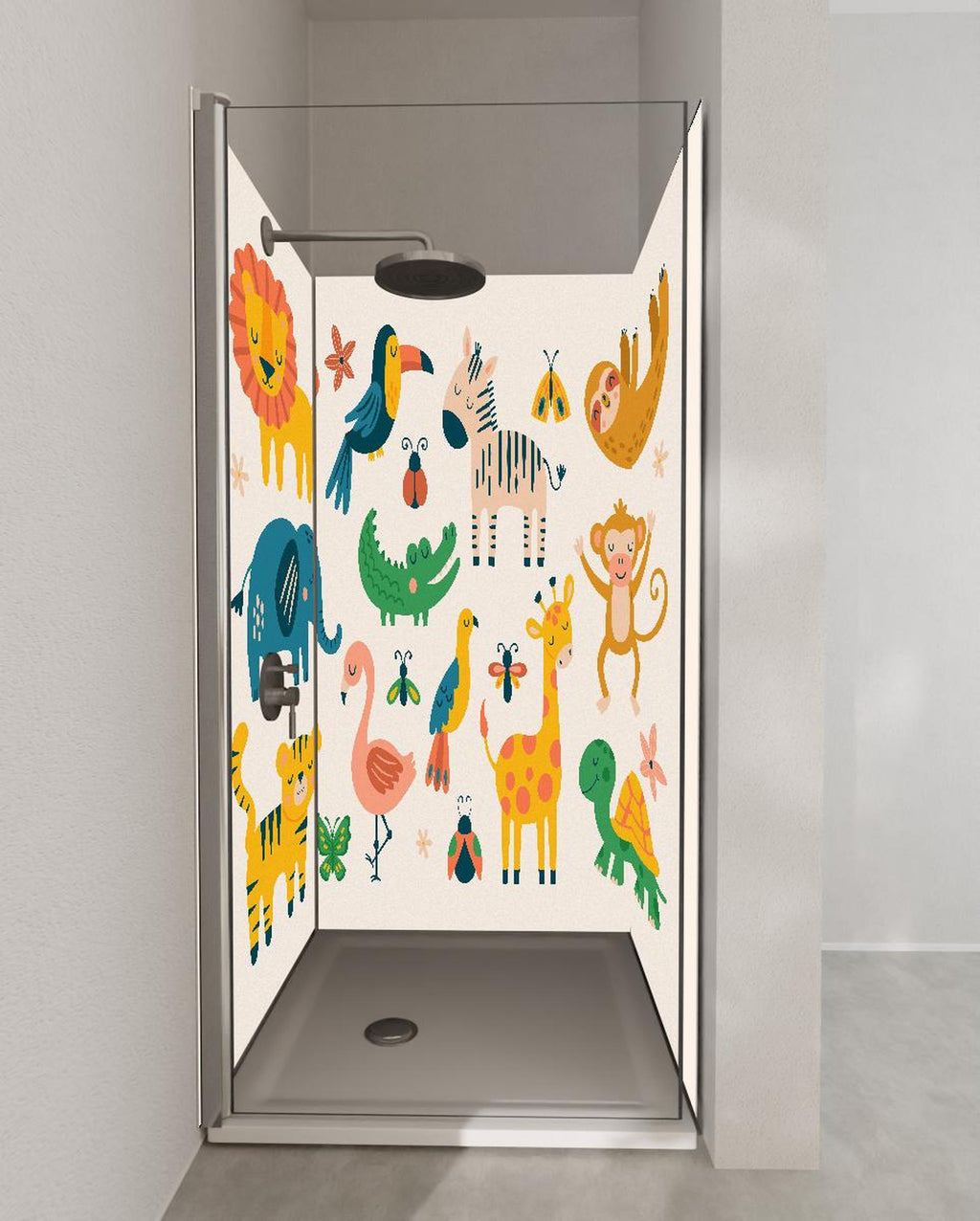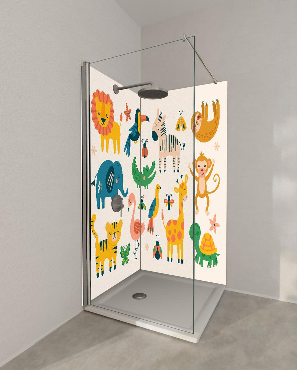 Duschrückwand - Fröhliche bunte Tierillustrationen für Kinder