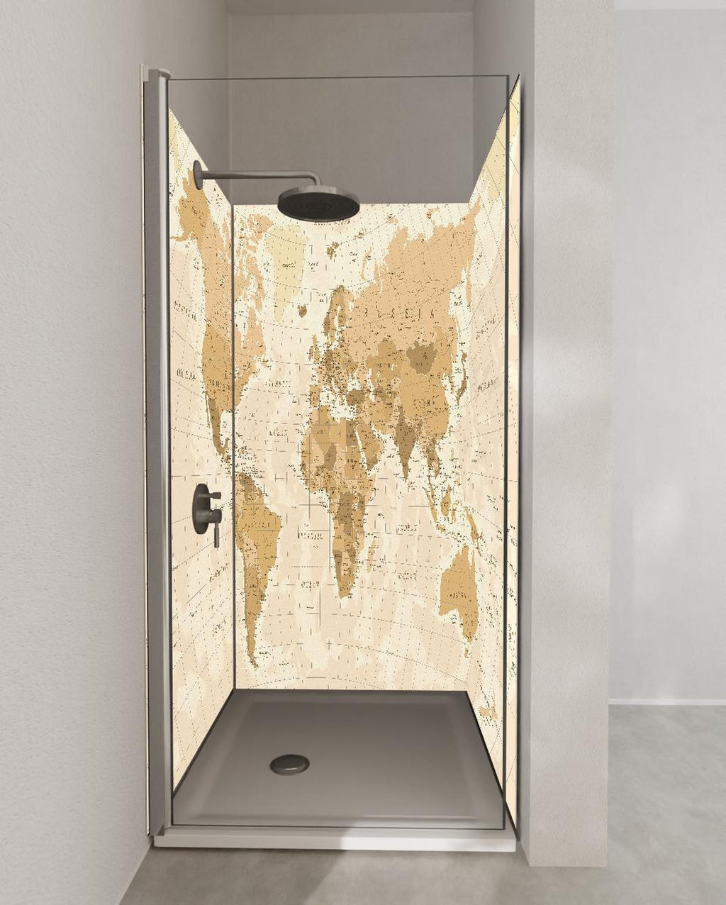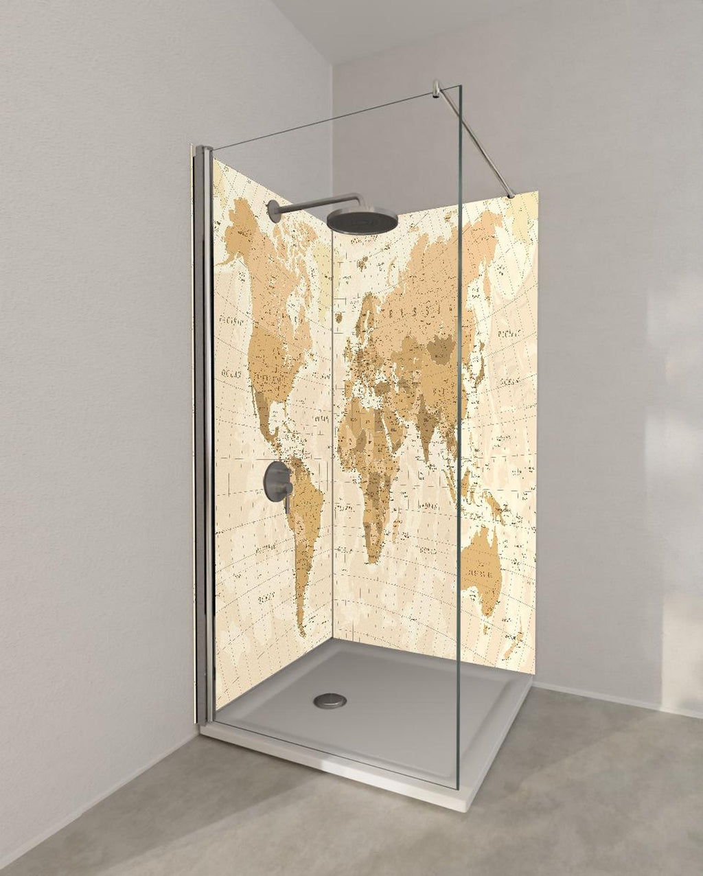 Duschrückwand - Gedruckte alte Weltkarte im Sepia-Stil