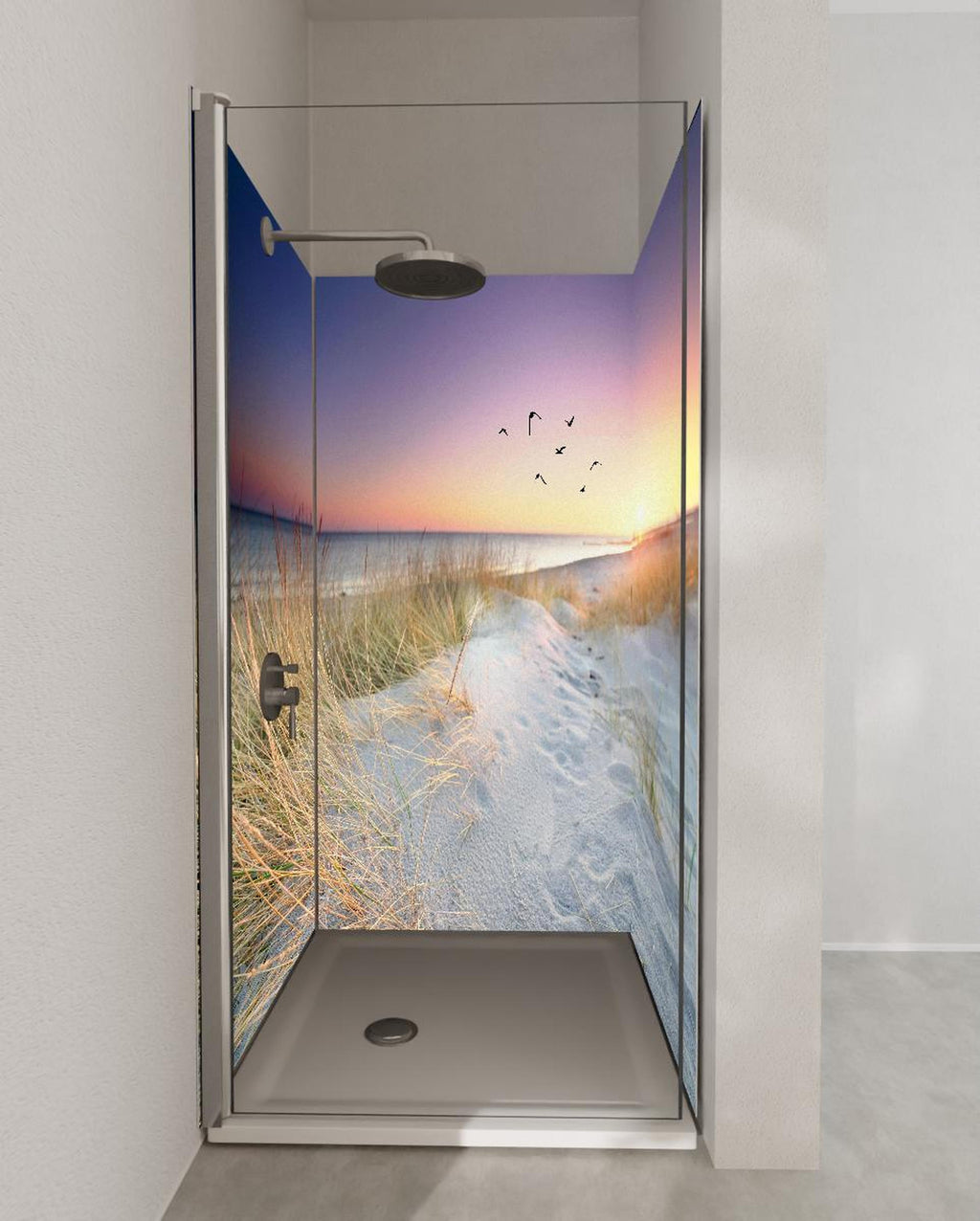 Duschrückwand - Goldenes Sonnenlicht an der Ostsee