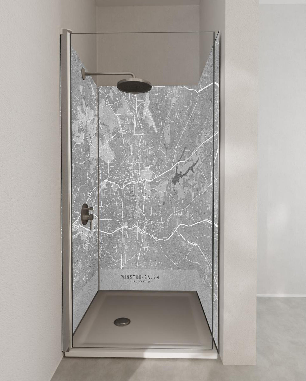 Duschrückwand - Graue Vintage-Stadtplan Winston-Salem Deko