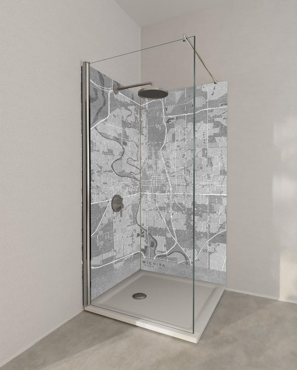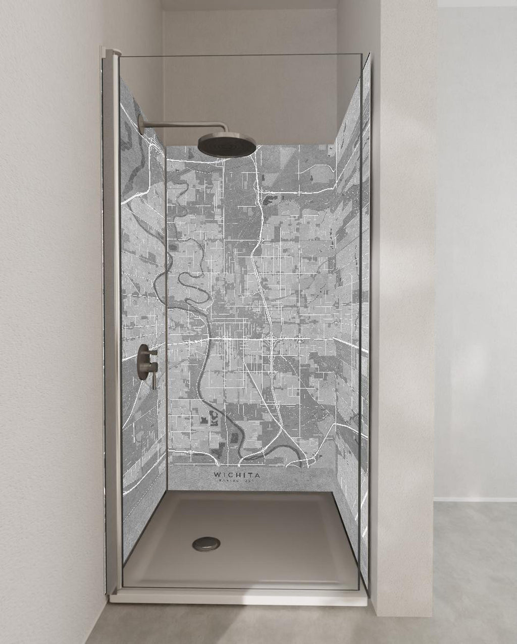 Duschrückwand - Grautöne Vintage-Stil Karte von Wichita