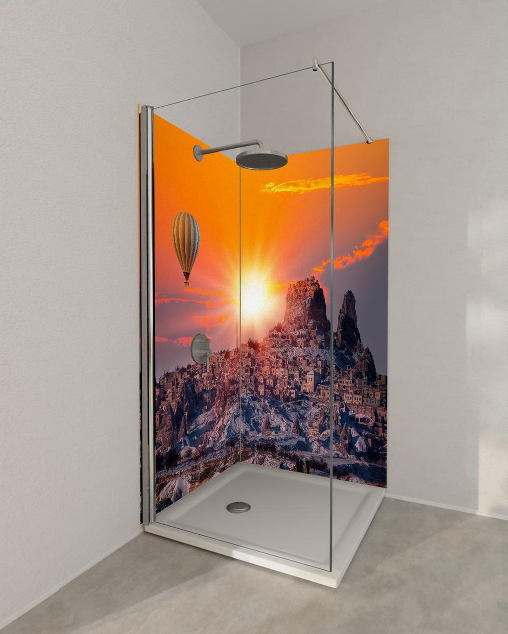 Duschrückwand - Heißluftballon bei Abendstunden in Kappadokien