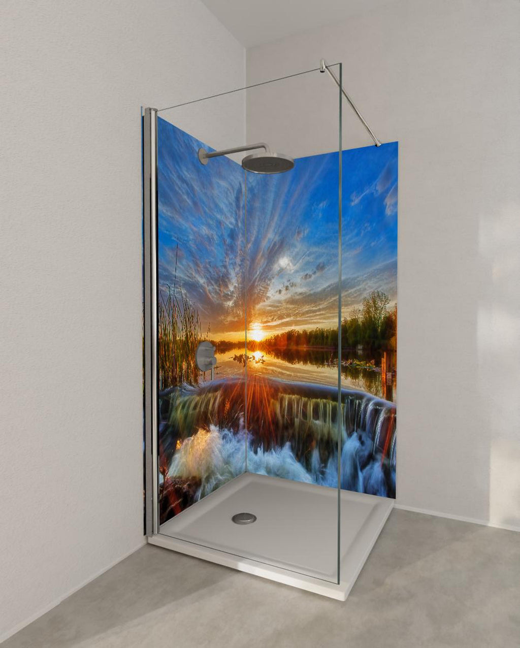 Duschrückwand - Herbstlicher Sonnenuntergang