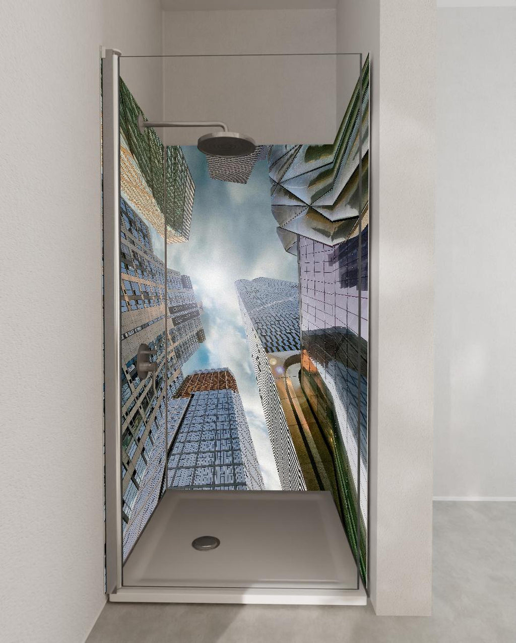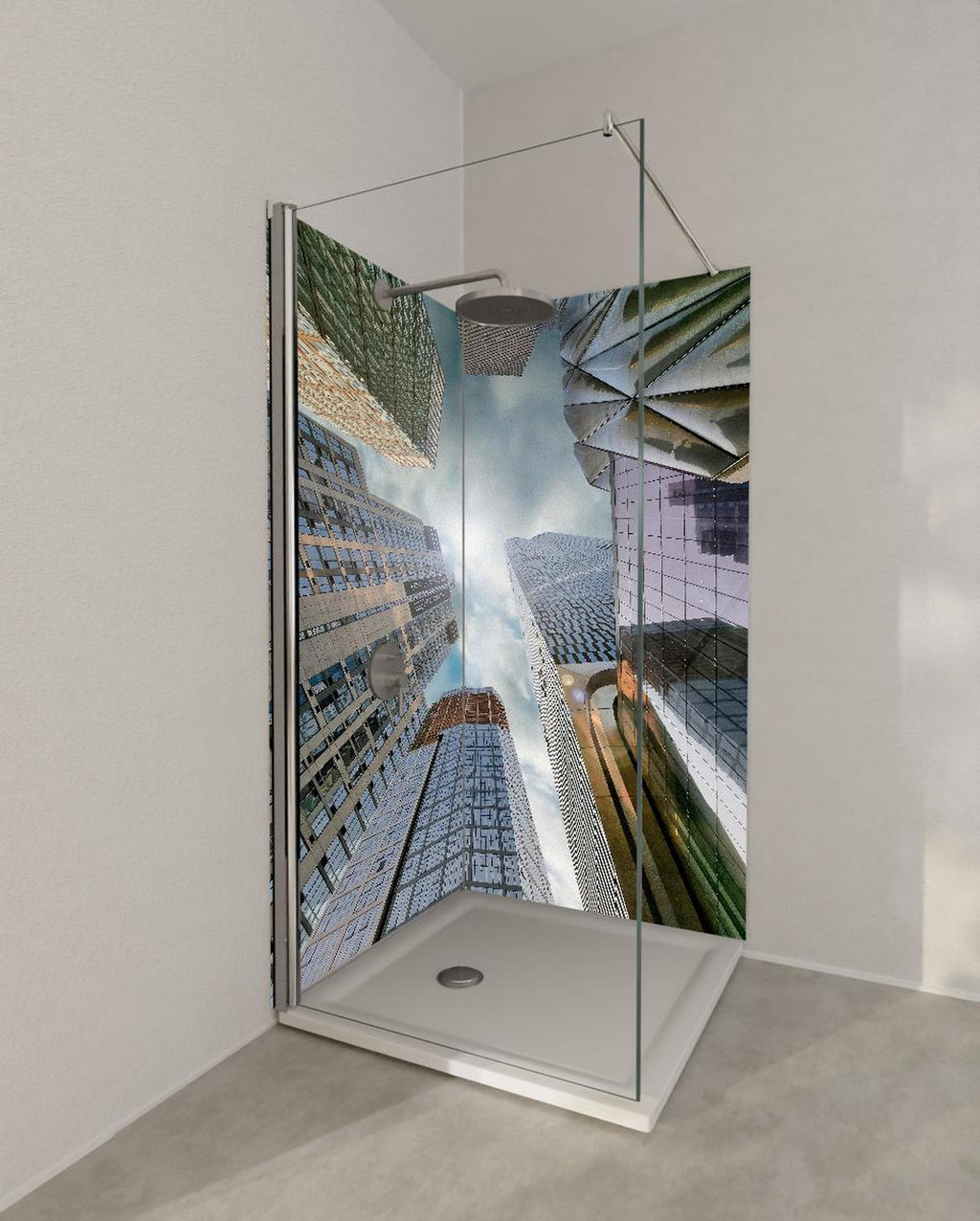 Duschrückwand - Hohe Gebäude - Menschen Perspektive
