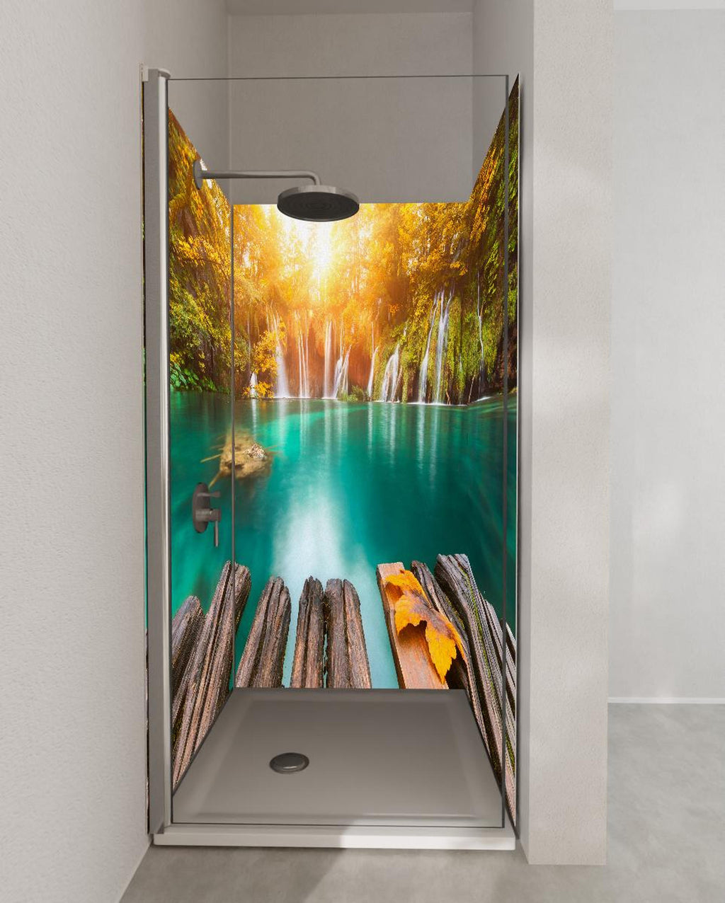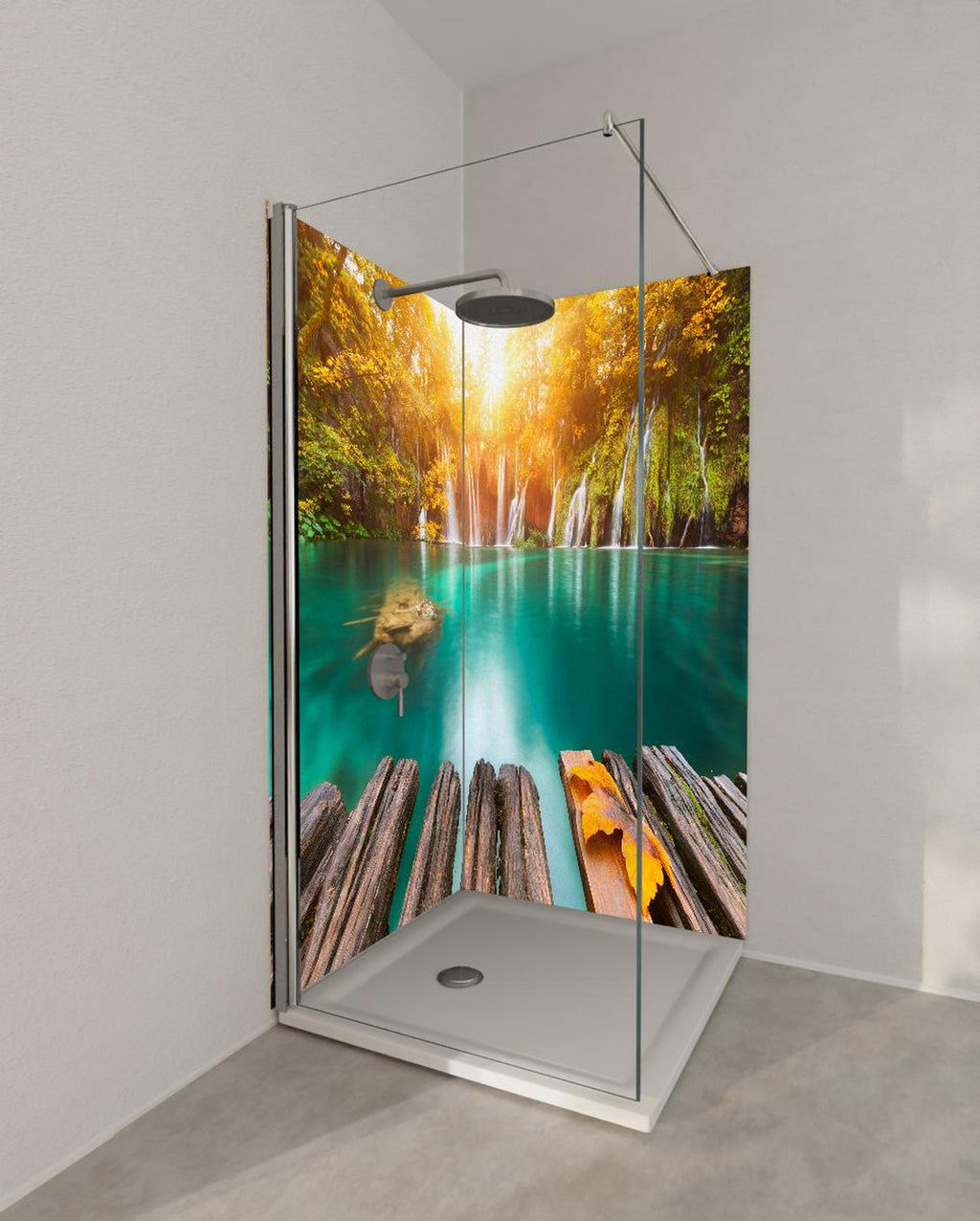 Duschrückwand - Idyllischer See im Plitvicer Nationalpark