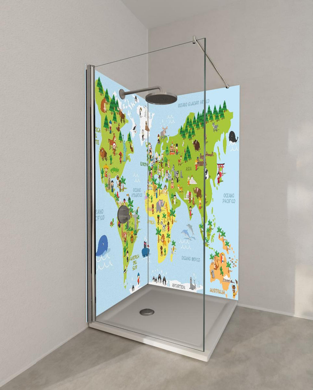 Duschrückwand - Illustrative Weltkarte für Kinder Lernspielzeug