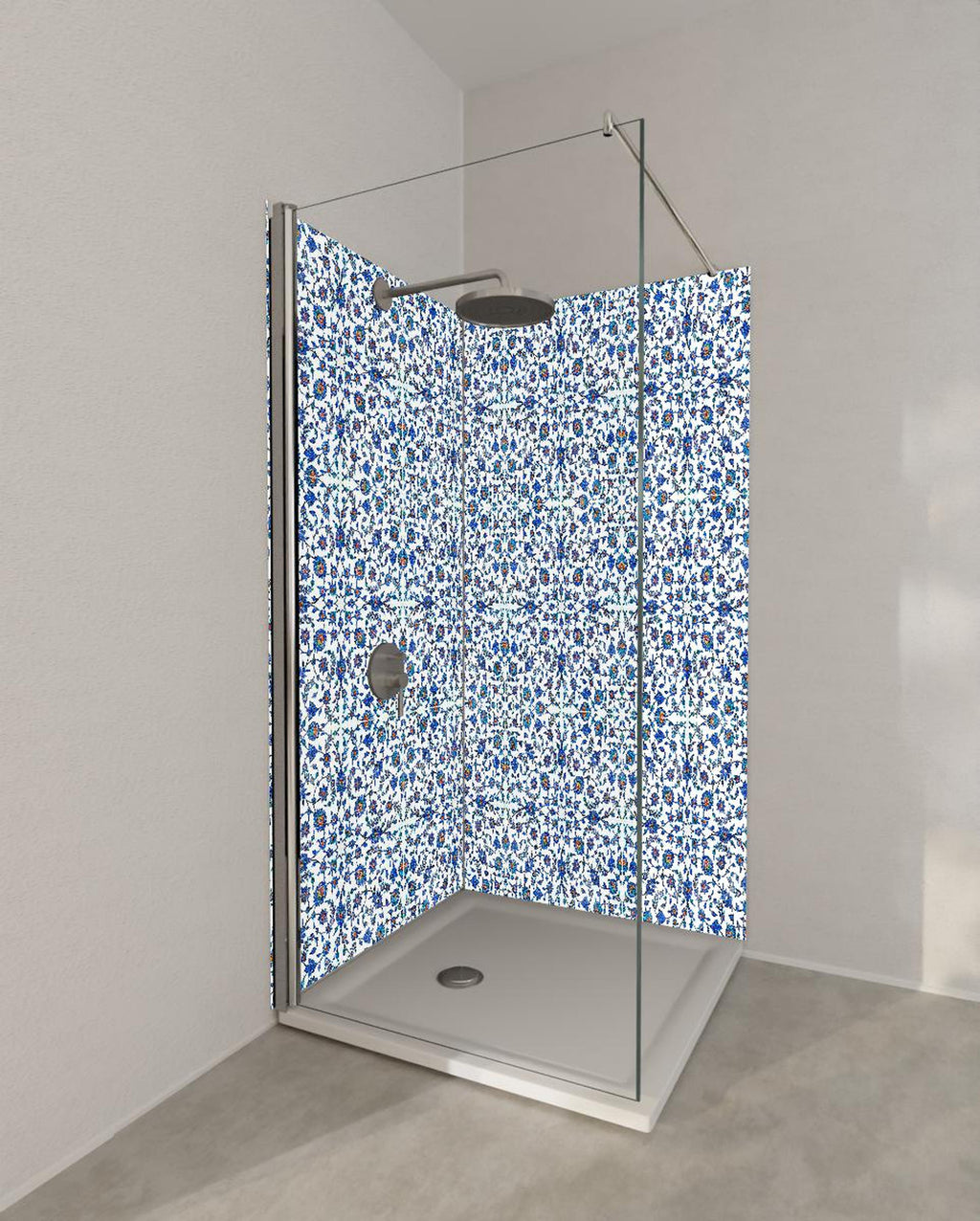 Duschrückwand - Kachel-Mosaik mit Blumen in Blau-Weiß