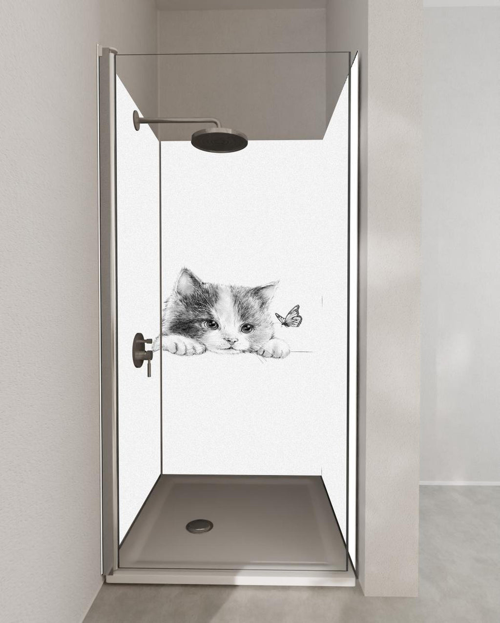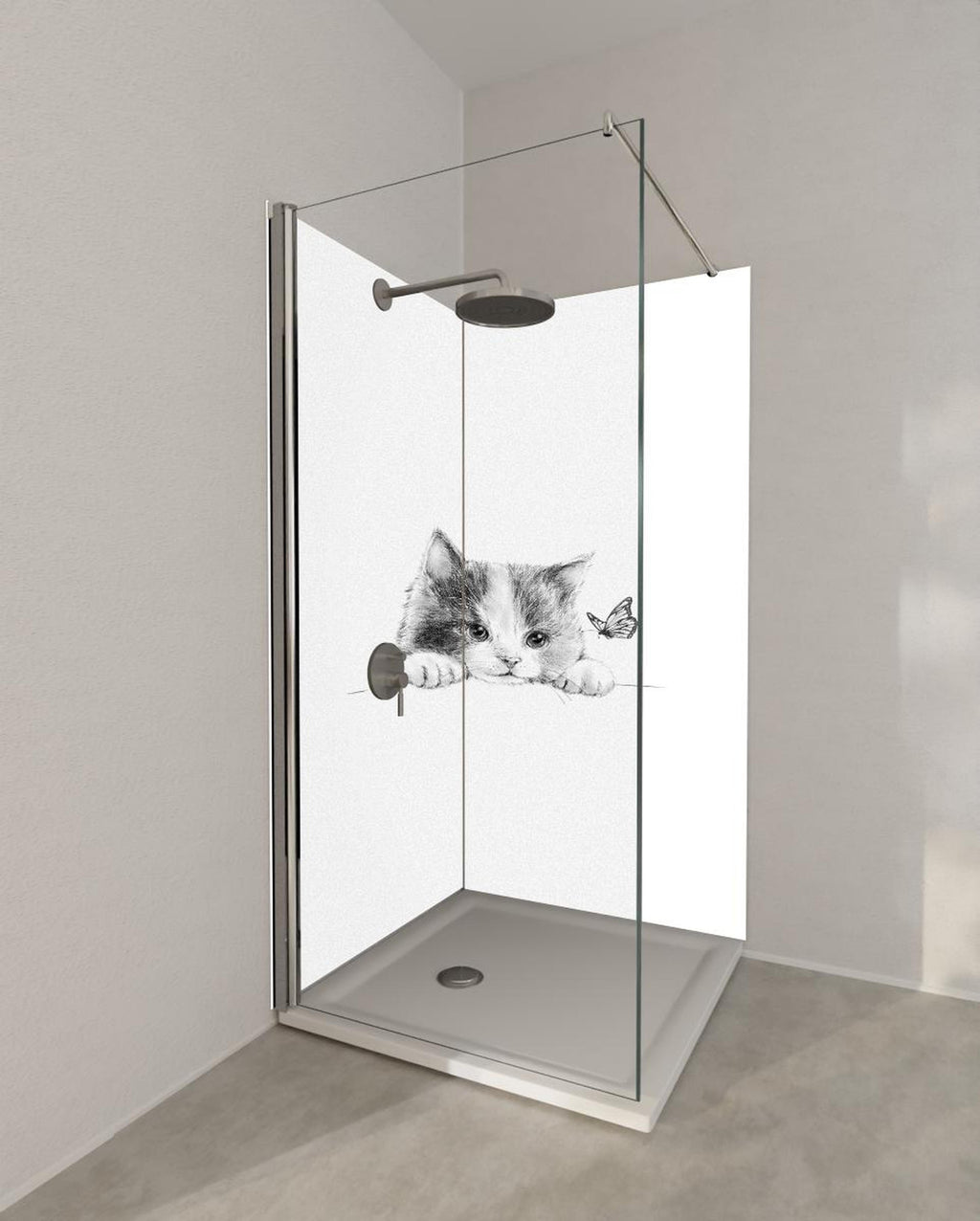 Duschrückwand - Kindermotiv einer Katze - schwarz-weiß