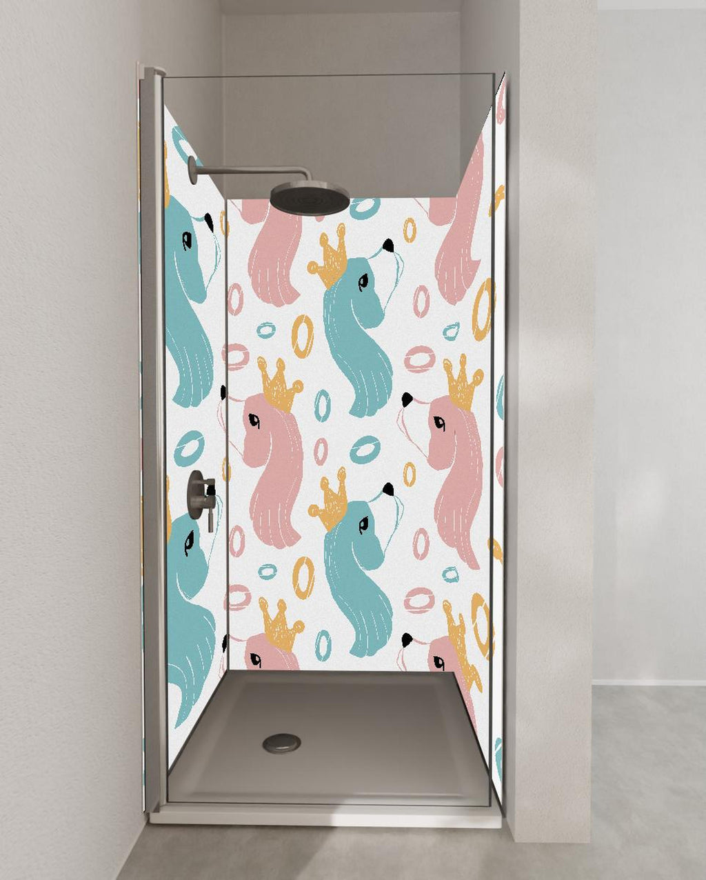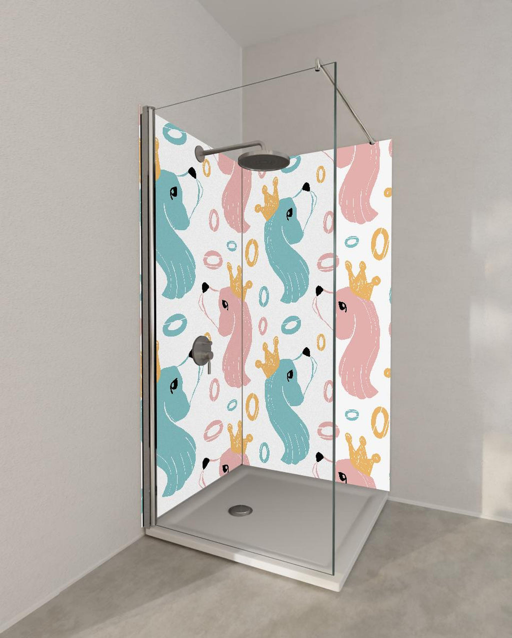 Duschrückwand - Kindliches Einhorn-Motiv mit Kronen