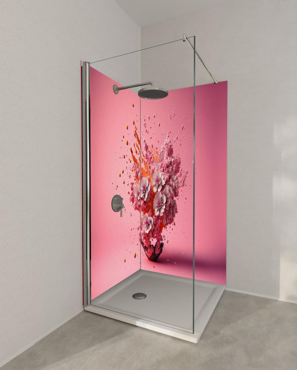 Duschrückwand - Kreative Kirschblüten Petalen Explosion