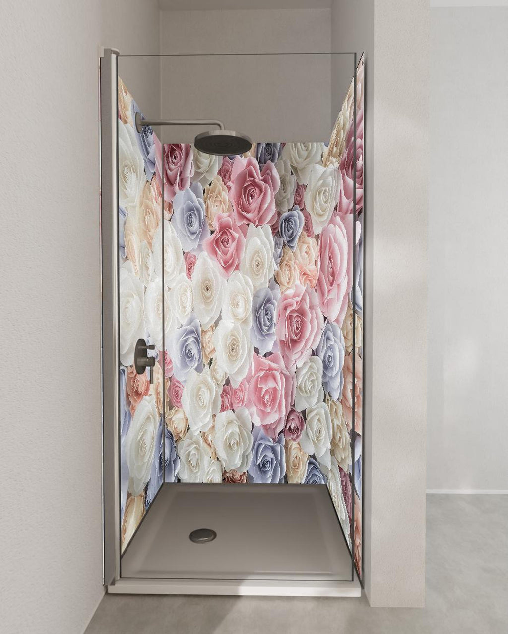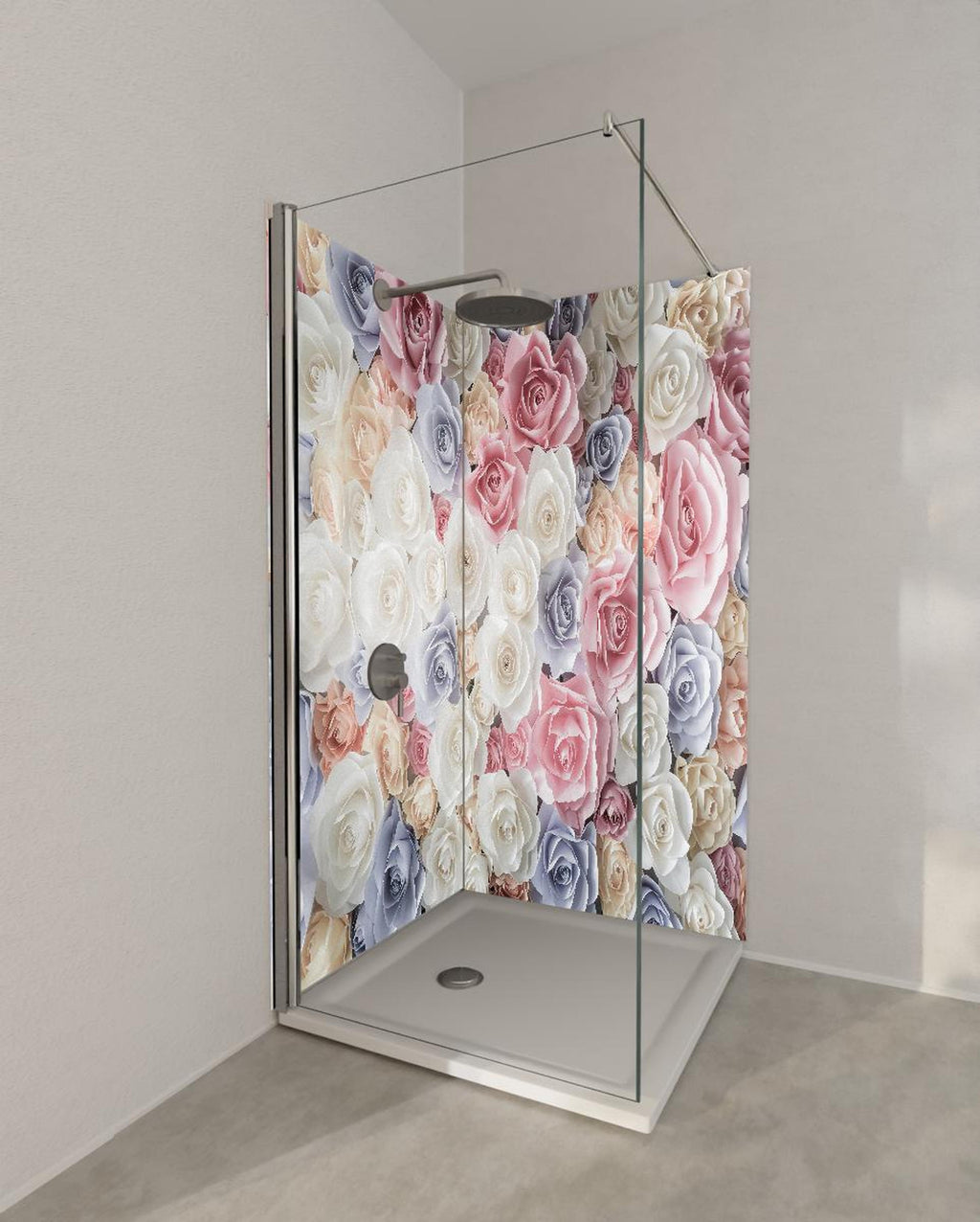 Duschrückwand - Kulisse aus bunten Papierrosen