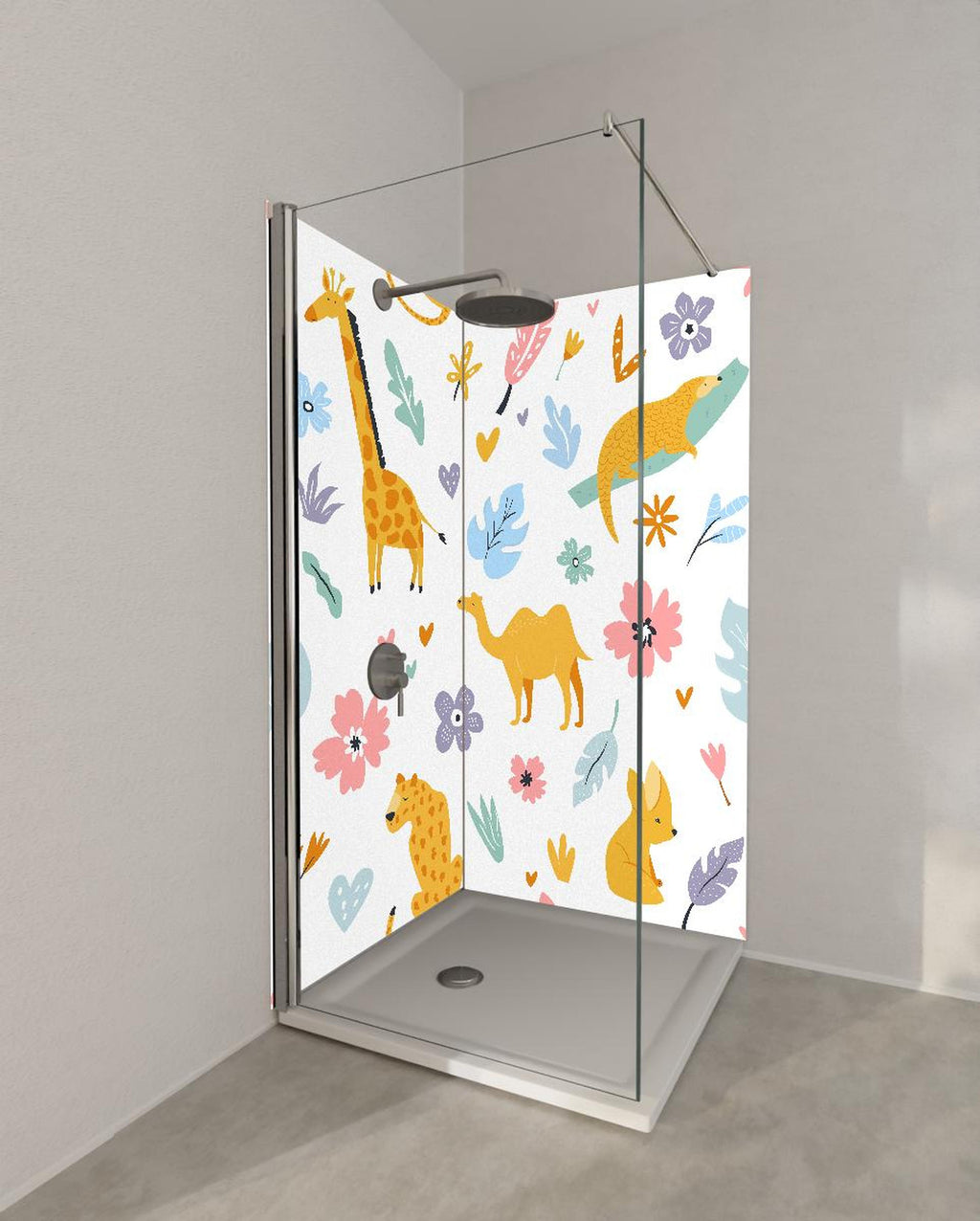 Duschrückwand - Lebhafte Kinderzimmer Tiermotive
