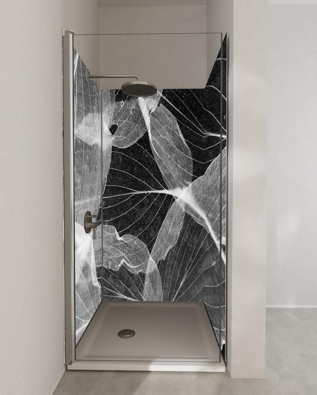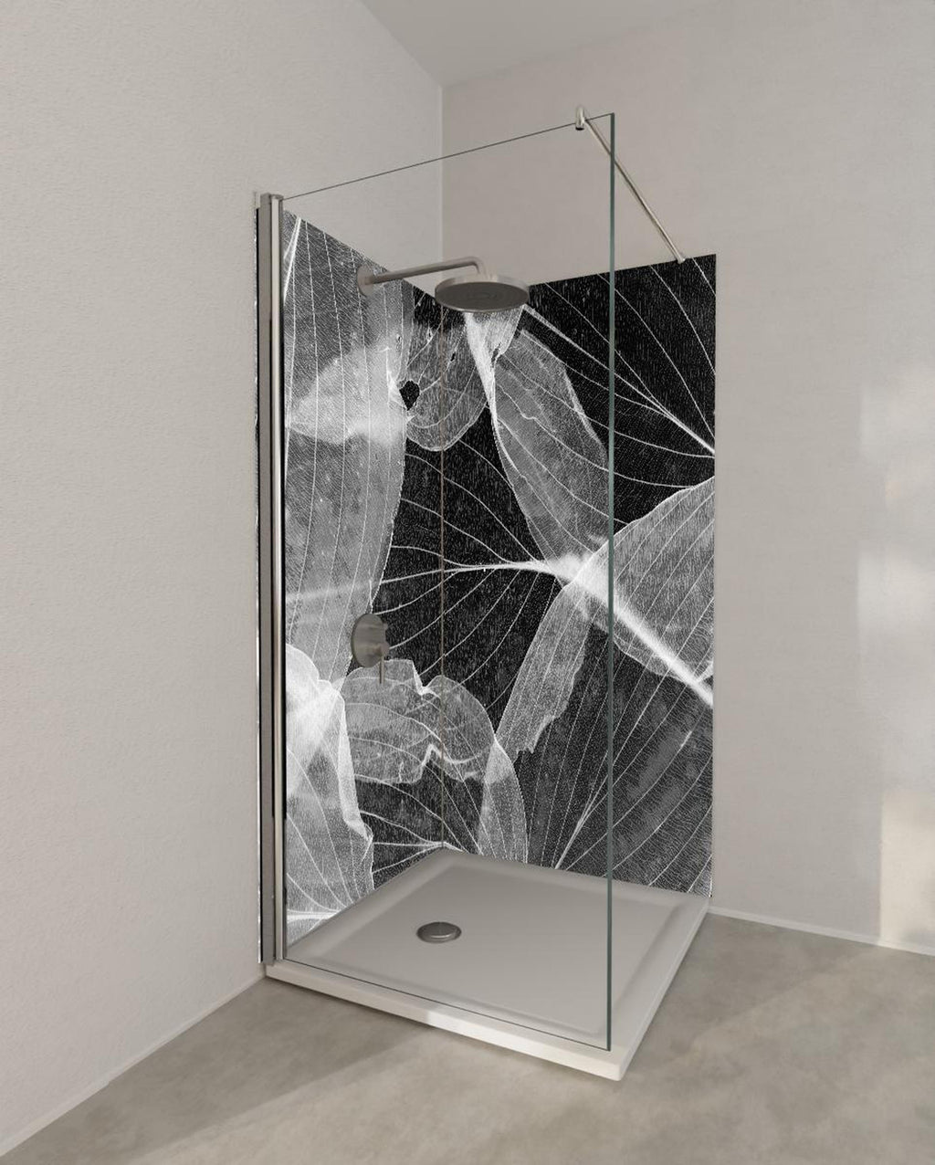 Duschrückwand - Makro-Textur Herbstblatt in Schwarz-Weiß