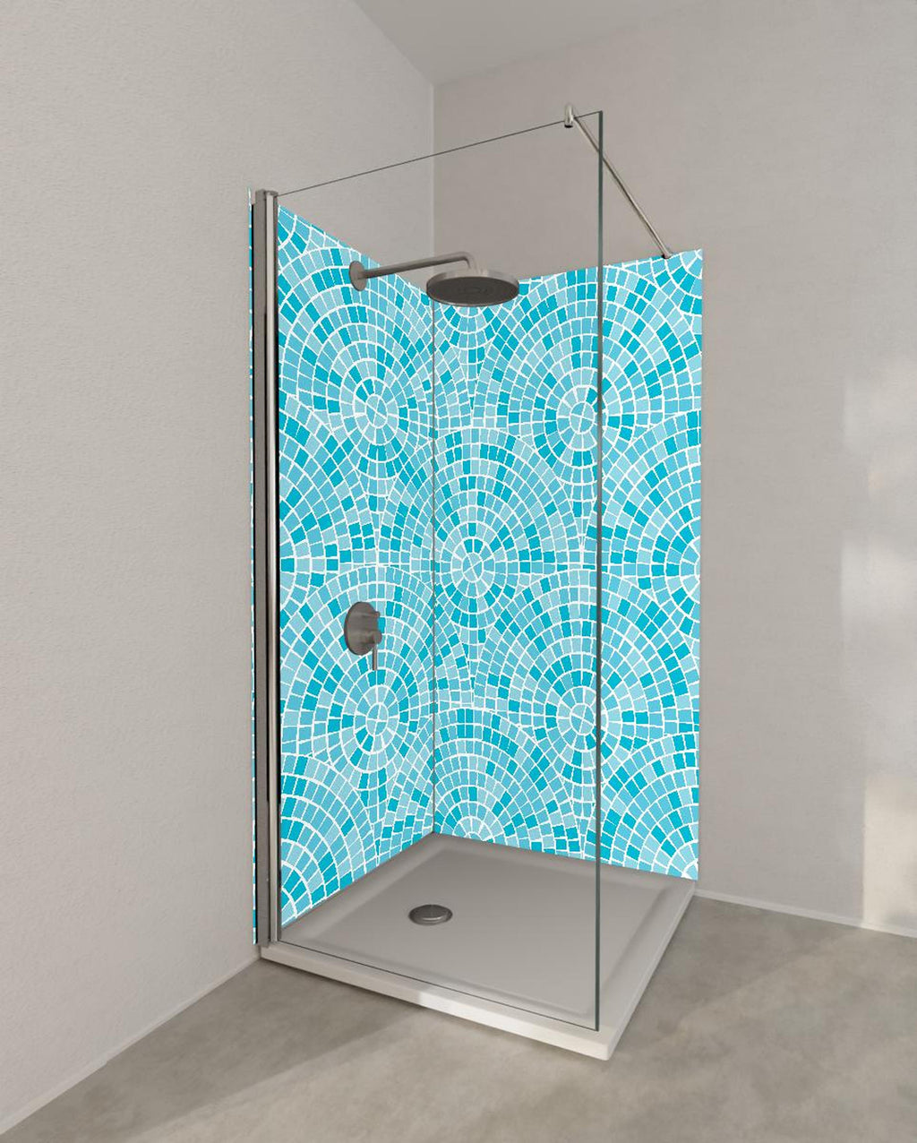 Duschrückwand - Mosaik-Design in Türkisblau mit geometrischen Mustern