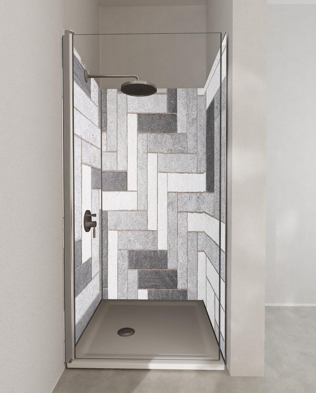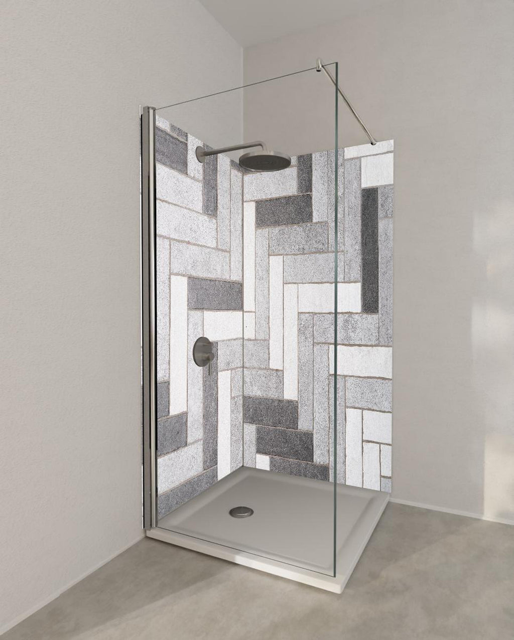 Duschrückwand - Mosaikbodenfliesen in Rechtecken