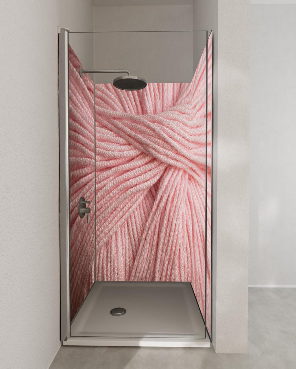 Duschrückwand - Nahaufnahme eines rosa Garnknäuels