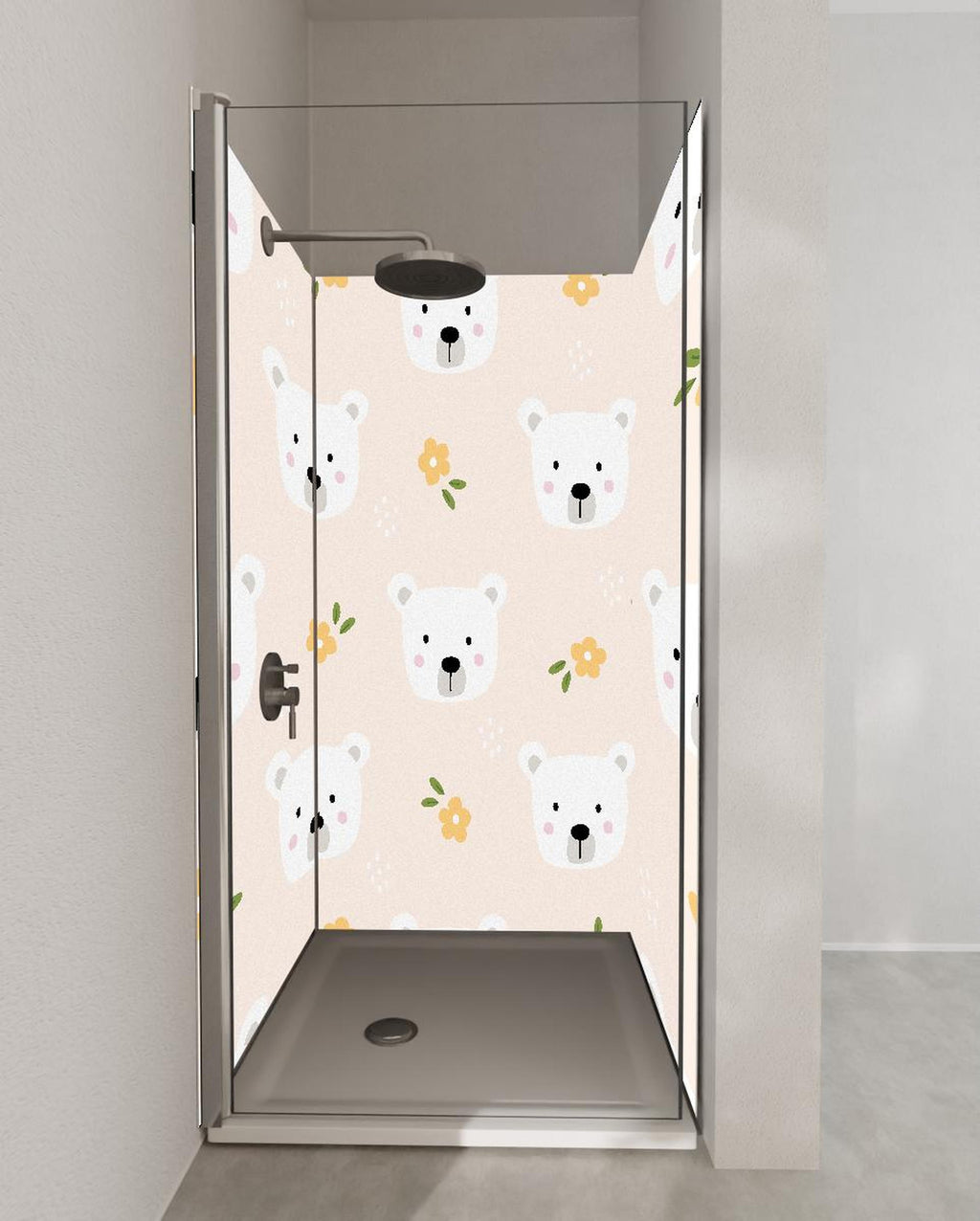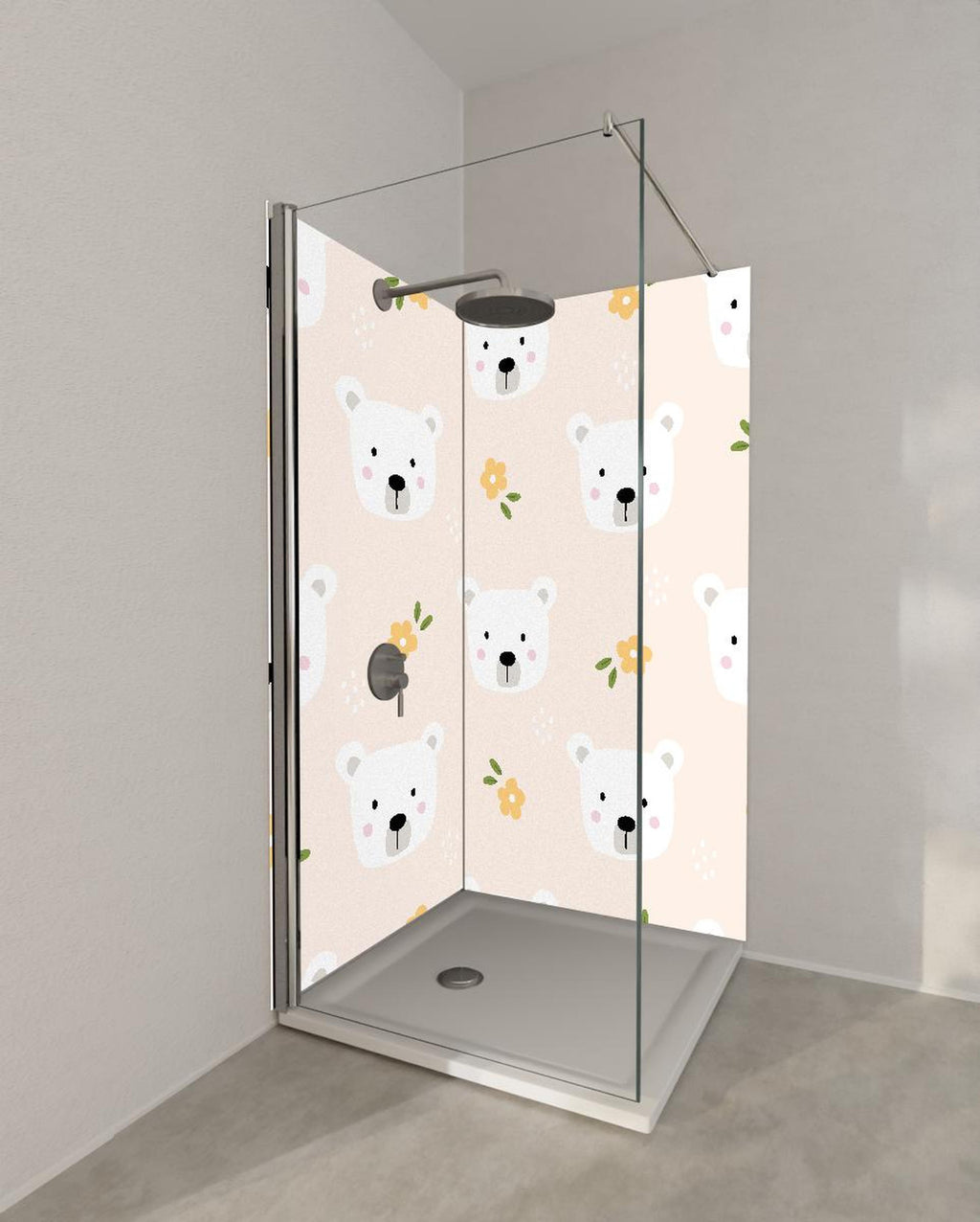 Duschrückwand - Niedliche Bärenköpfe und Blumen Muster Rosa