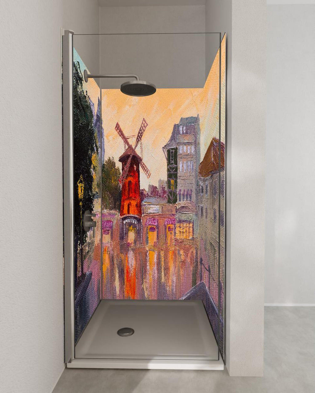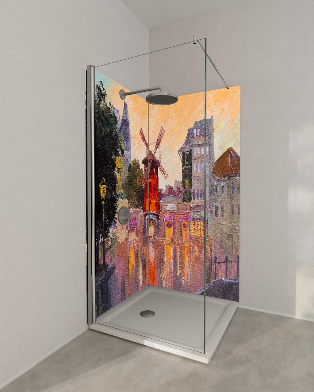 Duschrückwand - Ölgemälde Stadtbild - Moulin rouge