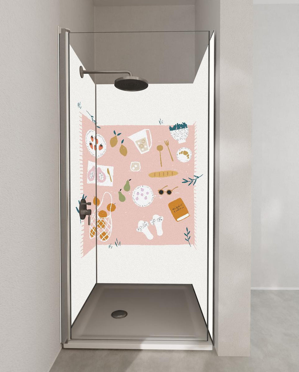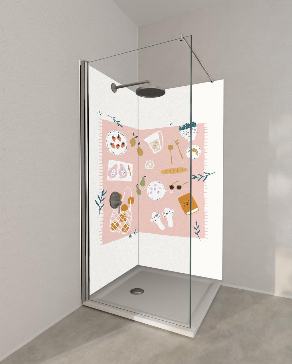 Duschrückwand - Pastell-Picknick-Zeichnung auf Weiß