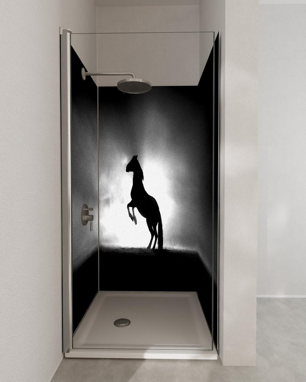 Duschrückwand - Pferd-Aufzucht in Schwarz-Weiß