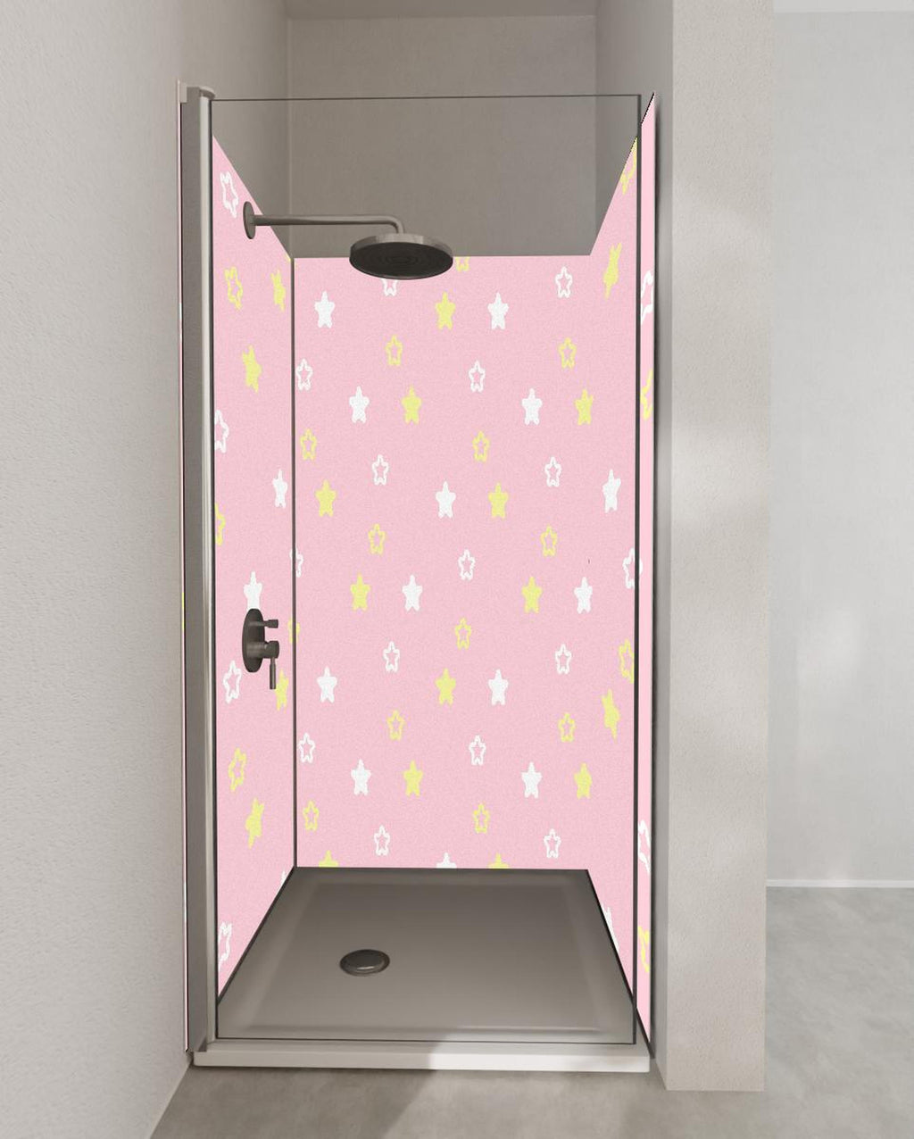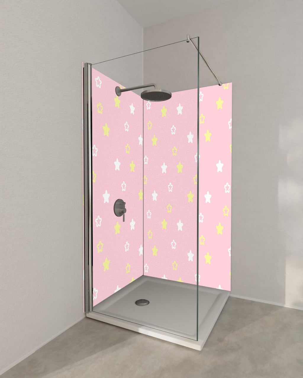 Duschrückwand - Rosafarbener Hintergrund mit gelben Sternen