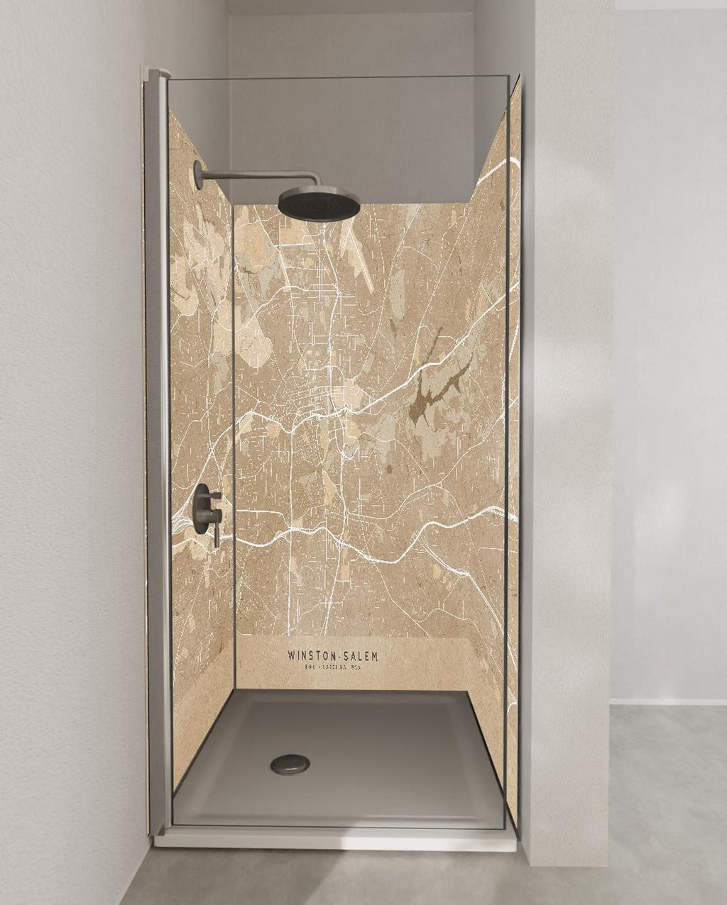 Duschrückwand - Sepia-Ton Vintage-Stil Karte Winston-Salem