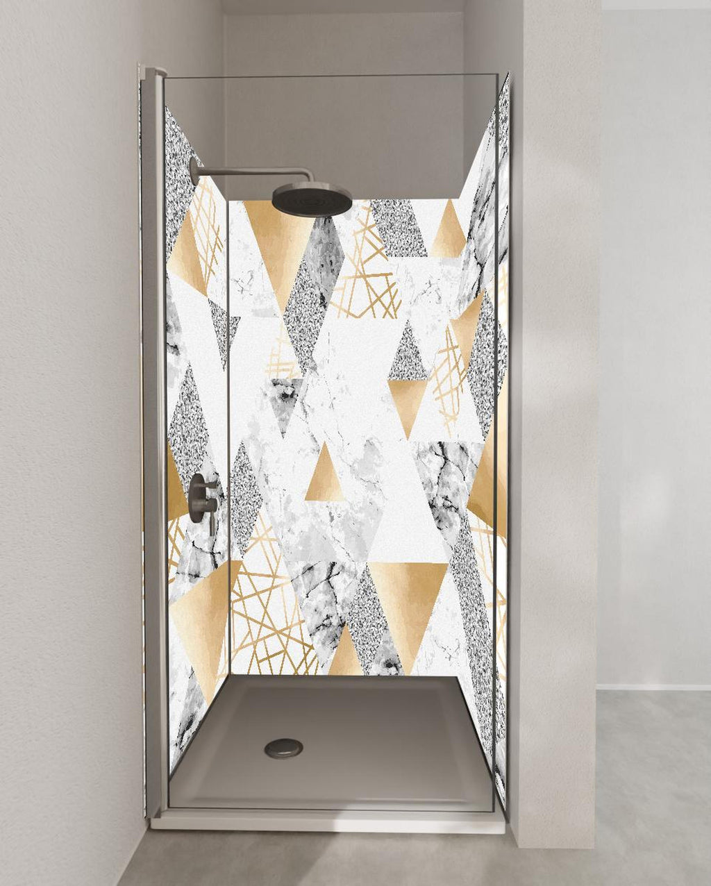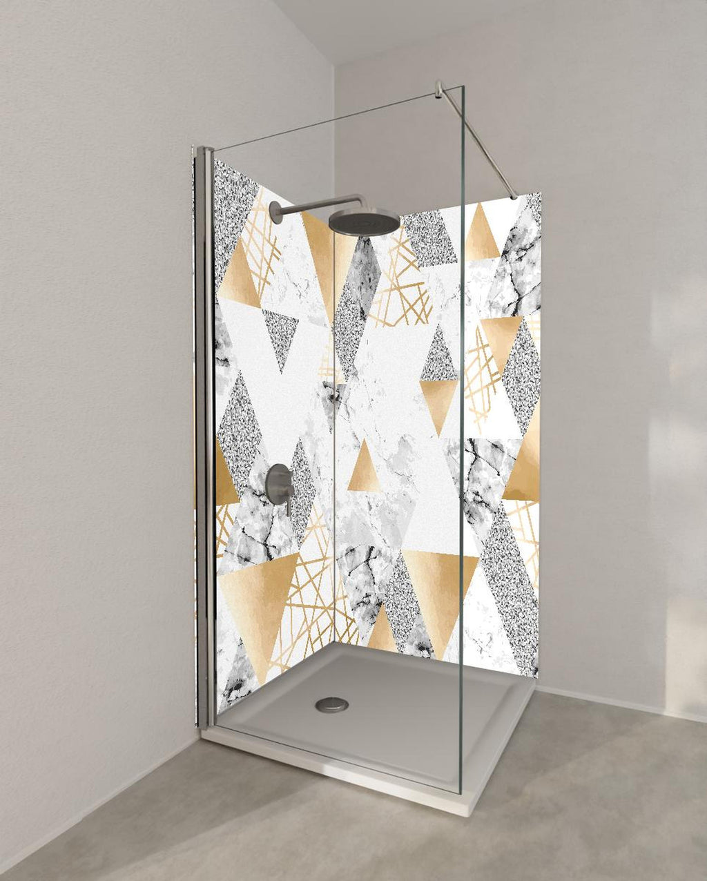 Duschrückwand - Trendige Gold Weiß Graue Dreiecksmuster Tapete