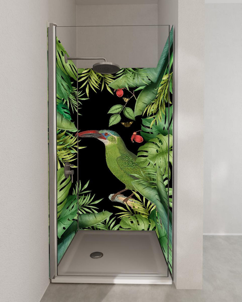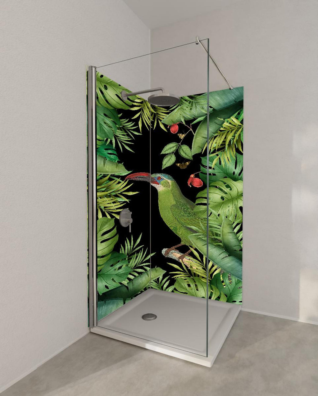 Duschrückwand - Tukan Malerei - Tropische Blätter