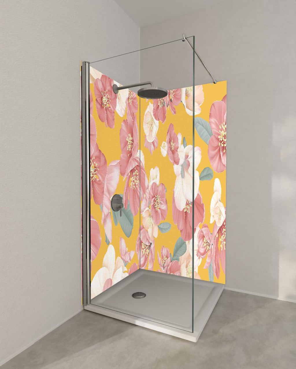 Duschrückwand - Vintage Quince Blumenmuster Pastellgelb